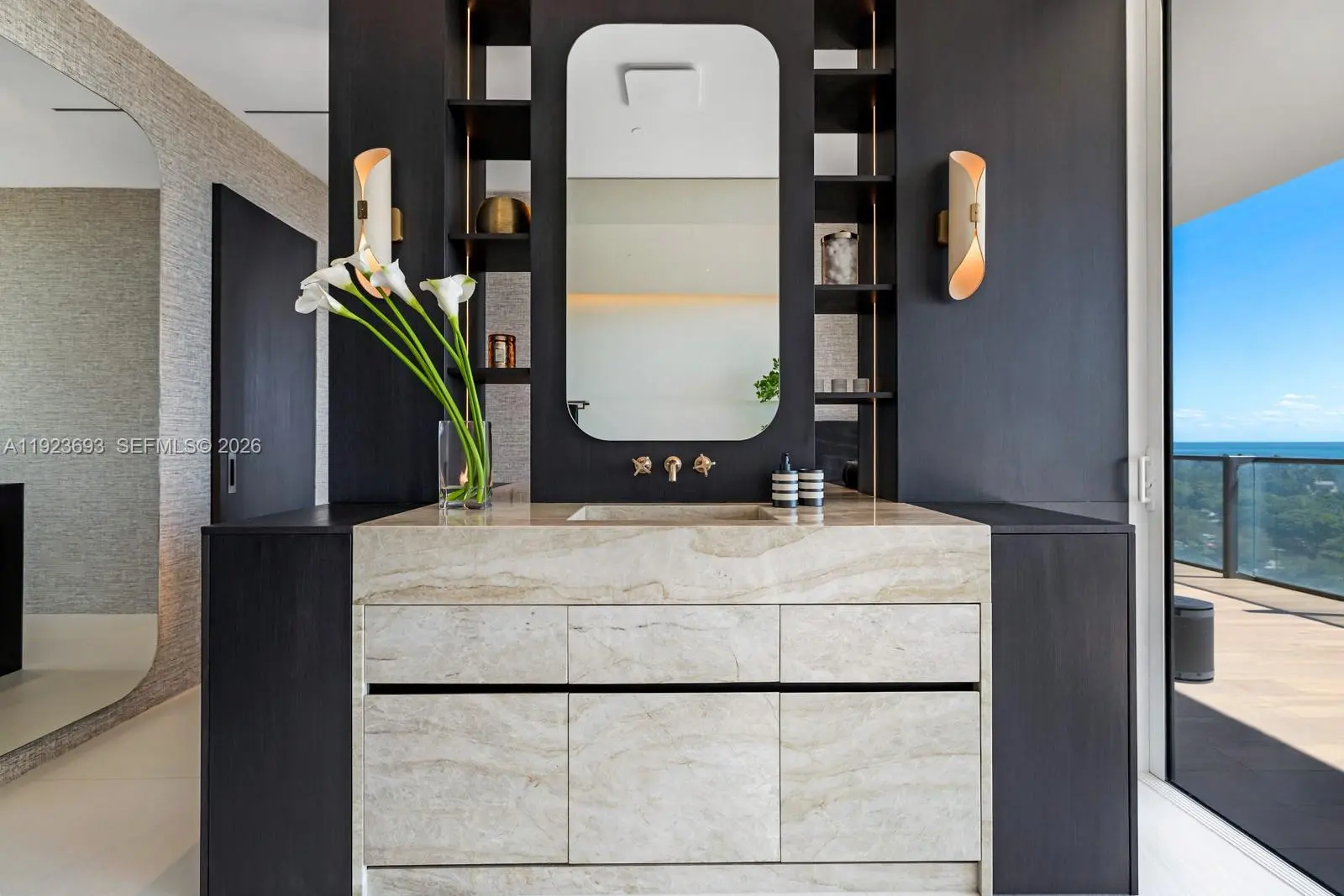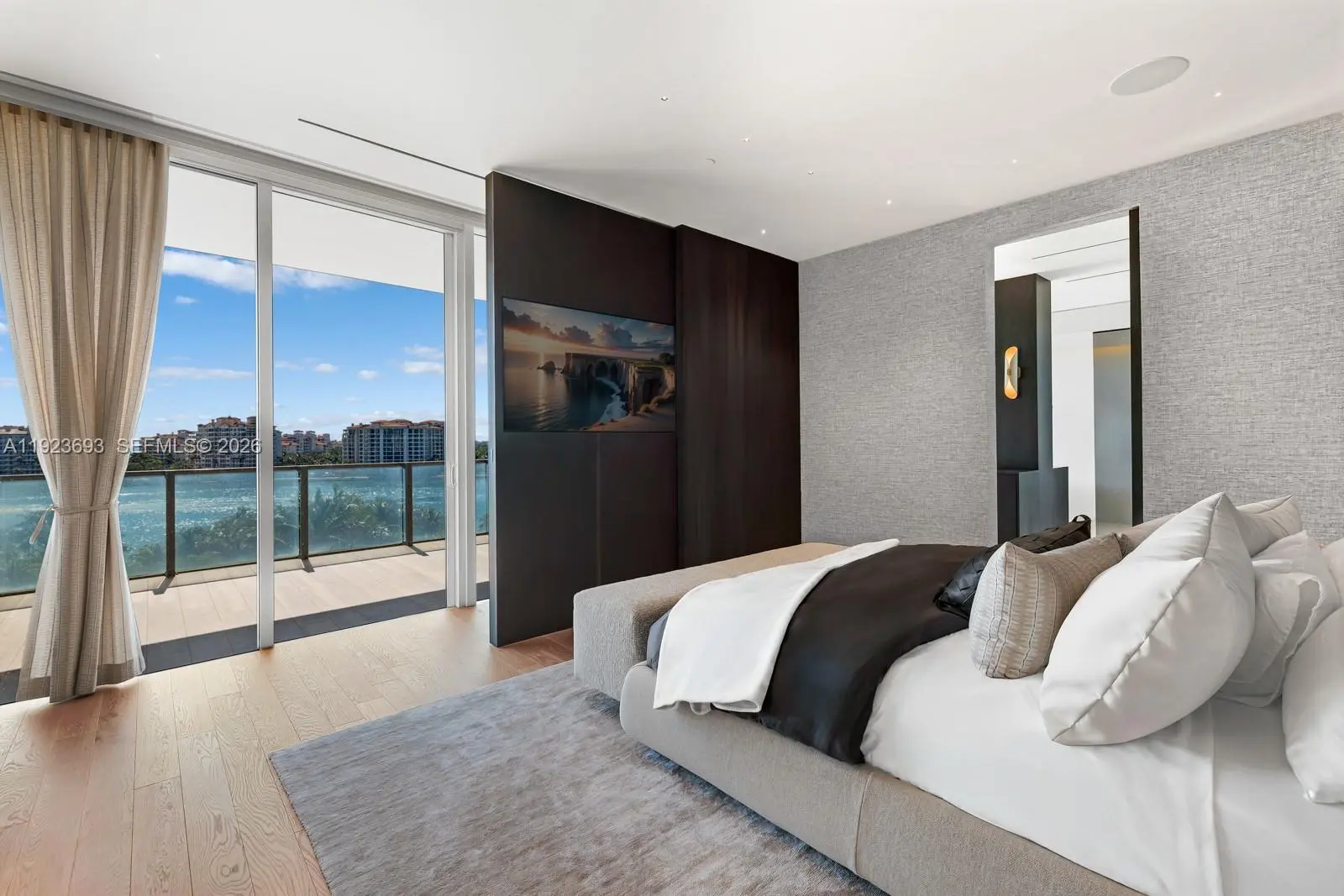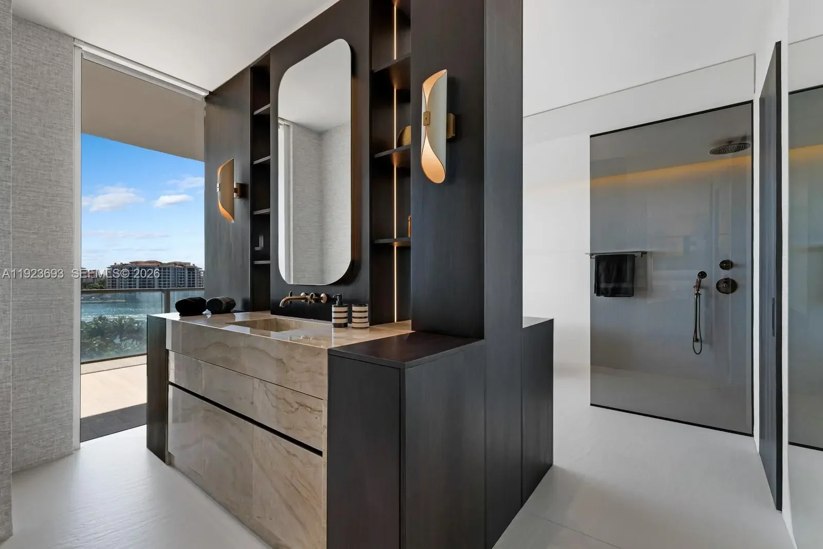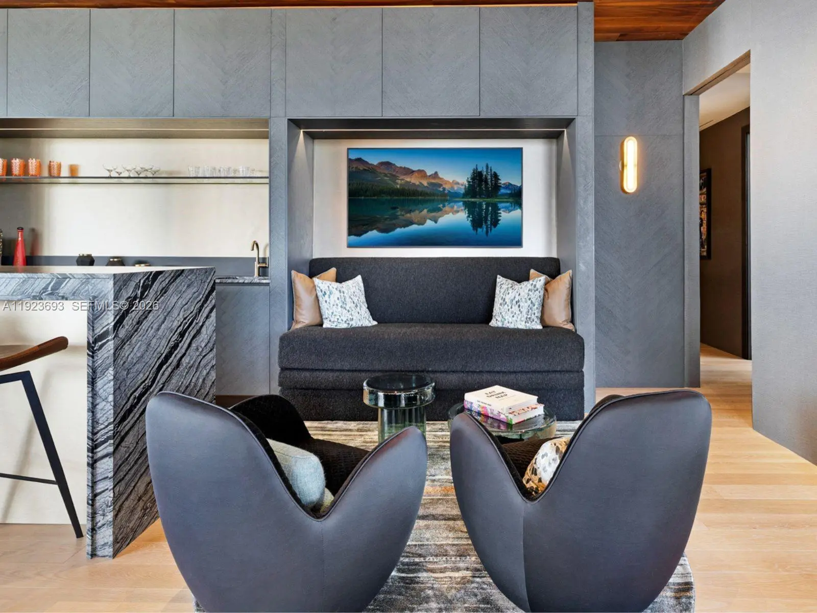 Step Inside With Me! A premier corner residence at Apogee in SoFi transformed by a multi-million-dollar renovation. Surrounded by wraparound water vistas, elevated interiors unfold through a wood-paneled foyer to the grand salon featuring Italian millwork, custom media wall, and Apparatus statement chandelier. A backlit onyx kitchen showcases Poliform cabinetry, Dekton eat-in island, and spacious pantry. The bespoke marble bar enhances the entertaining areas with a chic sitting lounge. The bayfront primary suite offers curated wallpaper, a retractable TV wall, generous dressing room, and a signature bath with curved details, Taj Mahal vanities, carved-stone shelves, and smoked-glass dual shower. 3 guest suites + office, 2 car garage, and sleek terrace grill complete this refined offering.