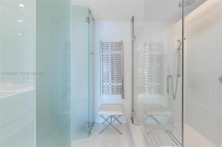 A high-floor corner residence at Jade Ocean, the iconic oceanfront tower designed by world-renowned architect Carlos Ott. This 4-bedroom flow-through residence on the 32nd floor features direct, unobstructed Atlantic views, floor-to-ceiling glass, private elevator foyer, expansive oceanfront living areas, and deep terraces facing both the ocean and Intracoastal. Interior design by Robert Migotto, published in multiple design and architecture outlets, showcasing custom built-ins, refined millwork, integrated lighting, upgraded doors, closets, and high-end finishes throughout. Marble flooring, impact glass, gourmet kitchen with premium appliances, spacious en-suite bedrooms, and a luxury primary bath with dual vanities, separate tub & shower, and whirlpool. Jade Ocean offers world-class resort services: direct beachfront access, oceanfront infinity-edge pool, spa, full-service concierge, private cinema, business center, kids’ lounge, valet, top-tier security, and smart-building technology. HOA includes extensive services and reserves. Prime location on Collins Avenue—steps from restaurants, markets, and minutes from Bal Harbour Shops and A-rated schools.
