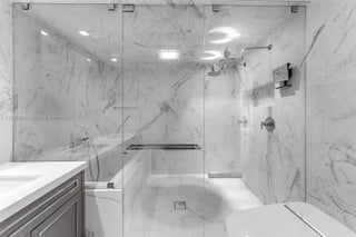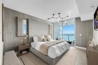High-floor residence in boutique lux building, The Grand Venetian, features 2 spacious balconies w/ panoramic views that capture Miami Beach living at its finest! Take in views of Biscayne Bay, Sunset Harbour Marina, the Atlantic Ocean, Miami’s skyline & sailboats anchored just in front of the balcony. Fully remodeled w/ high-end finishes, this 2/2 spans nearly 1,500SF & offers high ceilings, wood-style floors, marble kitchen w/ Sub-Zero & Wolf appliances, split-bedroom layout & marble baths w/ Toto toilets. Amenities: waterfront pool w/ cabanas, BBQs & hot tub, gym, tennis, 24-hr concierge & valet. Location is unmatched- steps from The Standard, Lincoln Rd & Sunset Harbour dining, shopping & wellness, w/ the beach minutes away. There is a park in front of building + a new waterfront park across. Two parking spaces - 1 assigned in garage & 1 valet. Partially furnished with only a king size bed & mattress, 1 hung tv, queen bed frame, 2 nightstands, vase, outdoor seating & side table, and large planter with fig tree.