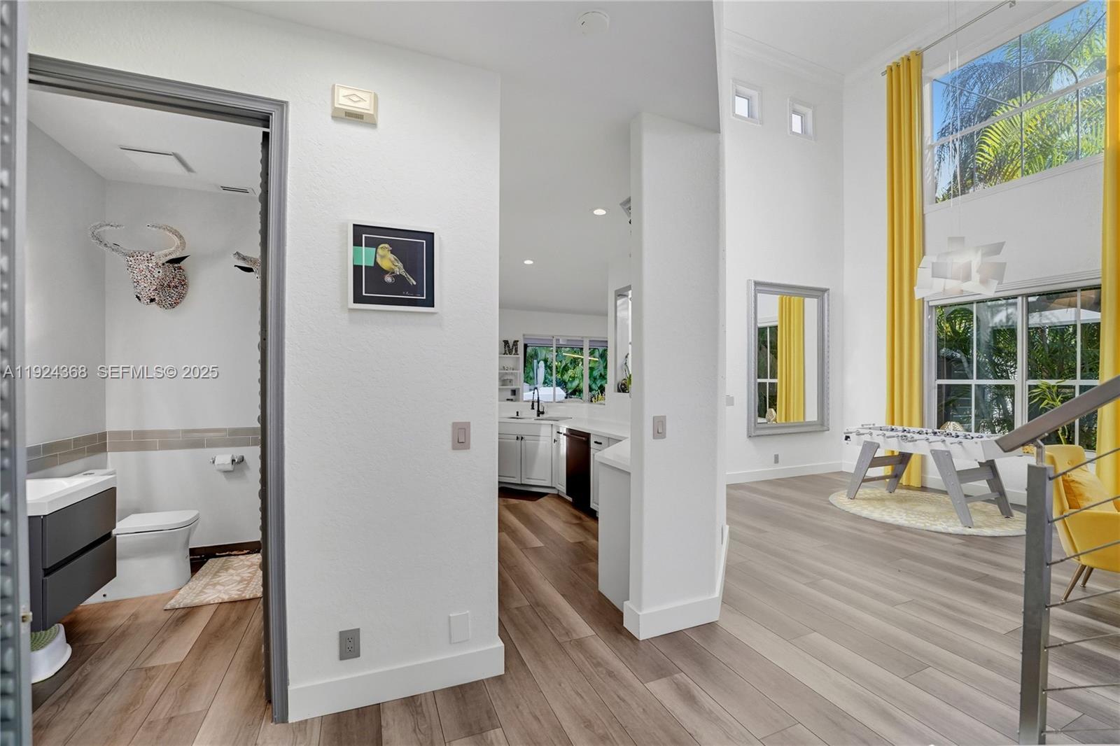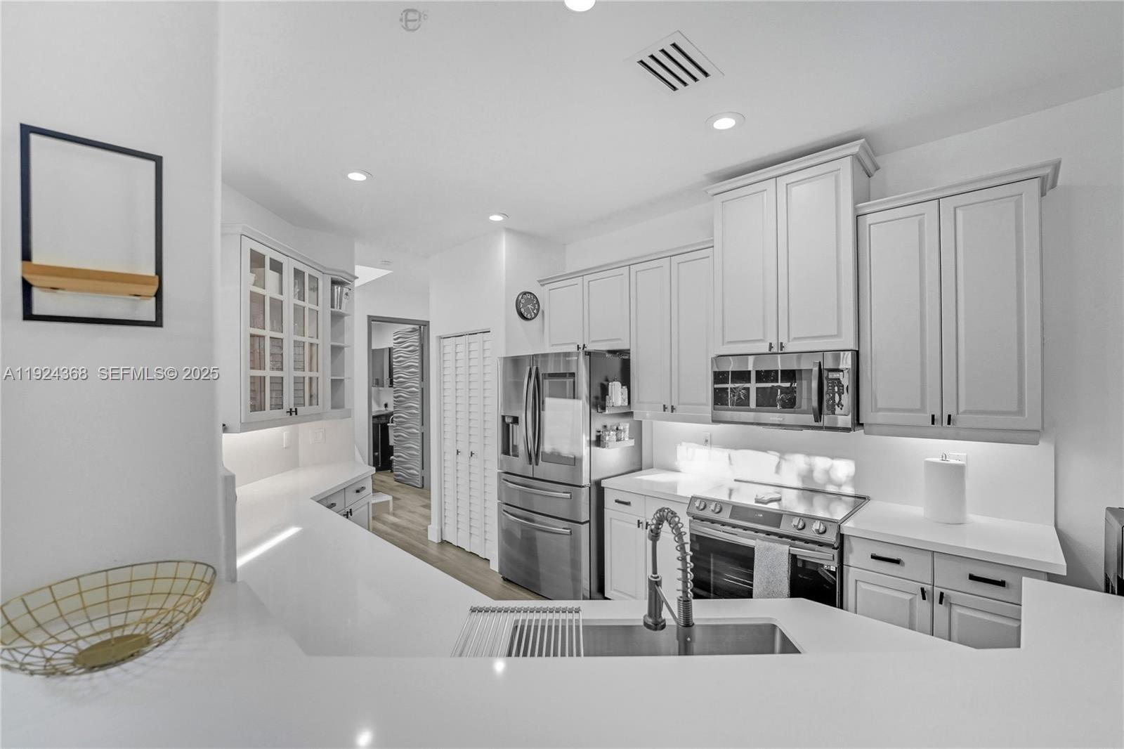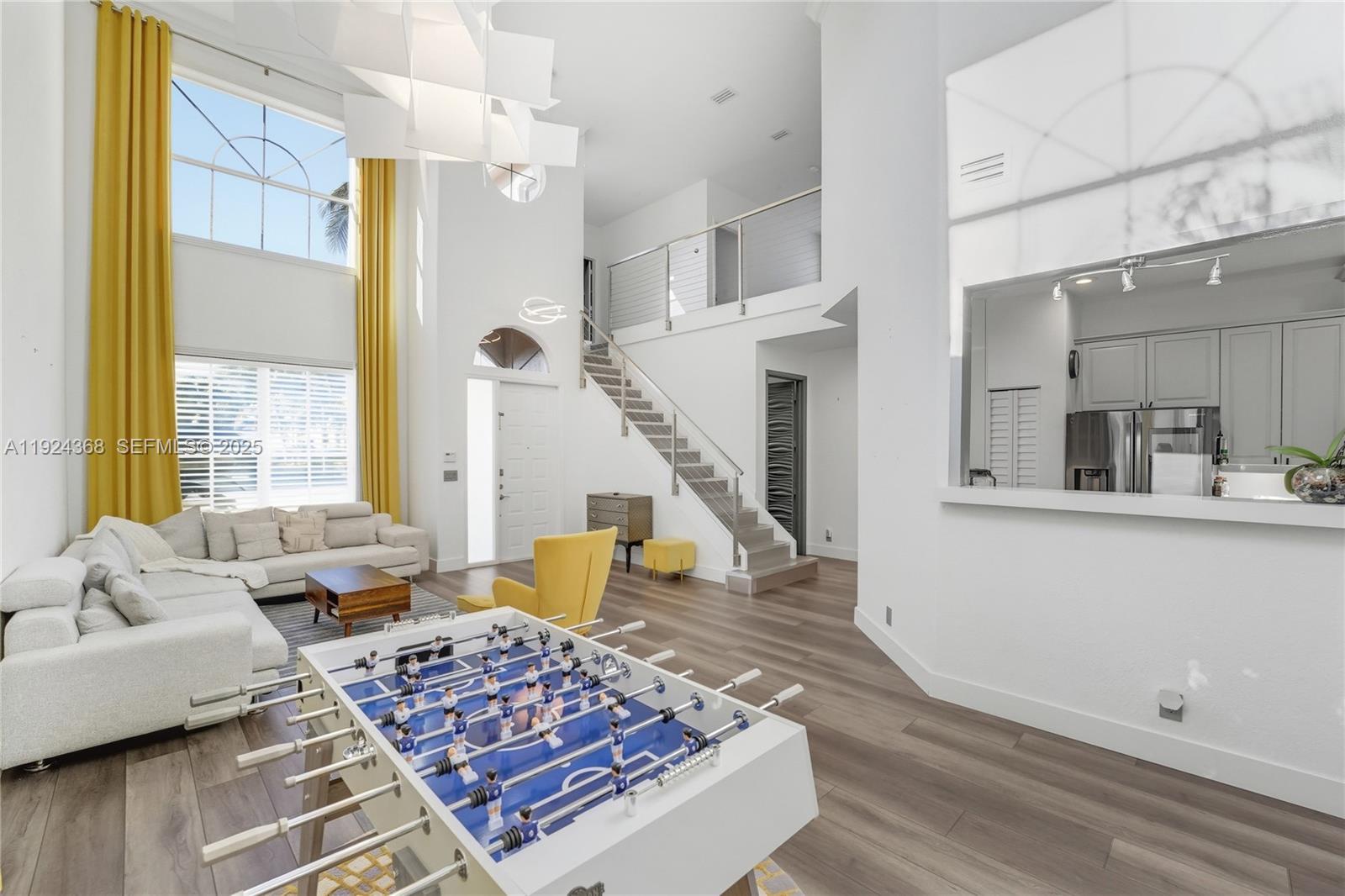 Beautiful home in a gated community. 4 bedrooms and 2.5 bathrooms, 2 car garage. Updated throughout, gourmet kitchen with quartzite counter tops and new Samsung black stainless appliances featuring a smart refrigerator. The vast master suite is located on the first level and 3 guest bedrooms are located on the second level with a large loft section. The spacious layout, along with the lofty ceilings from the entry to second level provides you with lots of natural light. The private backyard offers a saltwater heated swimming pool with travertine deck. High end Vinyl planks flooring, tankless water heater, EV charger station. Can also be rented fully furnished.