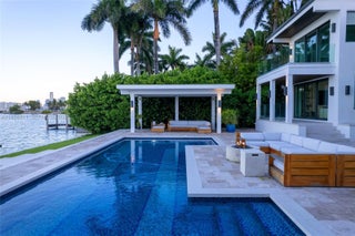 This stunning waterfront sanctuary on the prestigious Venetian Islands offers 90 feet of prime bay frontage, seamlessly blending serene privacy with the vibrant energy of Miami Beach. Set on a rare lot-and-a-half, this architectural gem is designed for the discerning art lover and entertainer alike. Inside, soaring ceilings and walls of glass flood the home with natural light, framing sweeping open bay views from nearly every room. The expansive floor plan connects effortlessly to outdoor living areas, where a custom summer kitchen, Brazilian-style BBQ and pizza oven, and sparkling private pool await. Host unforgettable gatherings poolside or unwind under the stars in the elegant lounge areas with gas fire features. A newly designed chef’s kitchen, marble floors, and gallery-style walls enhance the home’s sophisticated yet relaxed ambiance. The property includes 6 bedrooms, 6.5 baths, a custom 4-car garage, and breathtaking view of blue oceans and this wonderful city. A true Miami masterpiece, this is waterfront living elevated. Minutes from Sunset Harbor, the Design District, world-class shopping, dining, and culture. Originally built in 1939, but fully remodeled with permits in 2015. Effective year built per Property Appraiser is 2015.