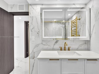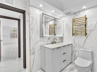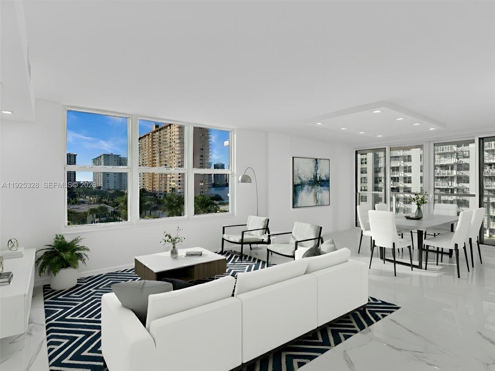 Step into luxury living in this fully remodeled corner 2-bedroom, 2-bath residence featuring the largest 2-bedroom floor plan in the entire Winston Towers community. This ultra-modern home has been professionally redesigned to deliver a seamless blend of sophisticated style, everyday functionality, and smart-living upgrades. The interior showcases a brand-new modern kitchen with stainless steel smart appliances, custom details, and generous counter space ideal for both cooking and entertaining. Custom-built, fully air-conditioned closets and pantries provide exceptional comfort while preserving stored items. Premium stone flows throughout the countertops and floors, accented with refined gold inlay and designer hardware that add elegance and cohesion. Hurricane-impact windows enhance safety, energy efficiency, and peace of mind, while every room reflects thoughtful design that balances beauty and practicality. The building offers unmatched reassurance as the only Winston Towers property to have completed both the 40-year and 50-year recertifications. Ideally located near top-rated Florida schools and just a minute’s walk from the beach, as well as restaurants, cafes, and shopping. Residents enjoy resort-style living with a fully renovated pool and community amenities. This move-in-ready residence has been completely reimagined, offering a rare opportunity to be the first to enjoy a meticulously designed home with modern comfort and lasting value.