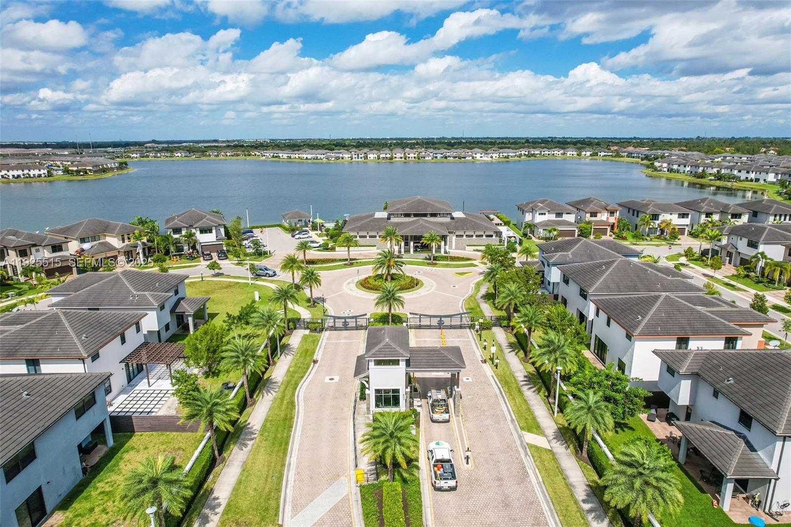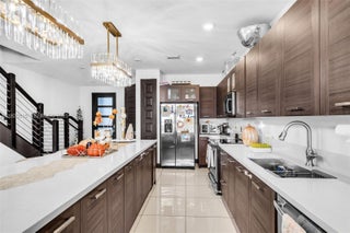 Stunning modern townhome with gorgeous lake views and an open-concept layout perfect for everyday living and entertaining. The main level features a spacious kitchen with an oversized island, quartz countertops, sleek wood cabinetry, stainless steel appliances and designer light fixtures, all flowing seamlessly into the bright living and dining areas. Large sliding doors and windows fill the home with natural light and showcase the serene water view. Glossy tile floors throughout the first floor, stylish staircase, and ample storage. Outside, enjoy a private driveway with room for multiple cars plus an attached garage and a cozy patio area by the lake. Move-in ready and beautifully maintained!