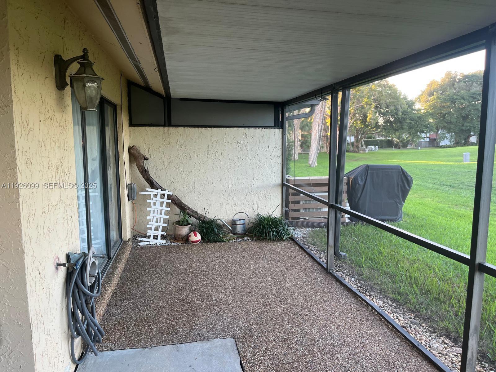 Beautifully maintained 2-bed villa with high ceilings, tile floors, and plantation shutters. Enjoy stunning golf course and lake views (adjacent to public Bonaventure Golf Club). The huge, updated kitchen features 42" wood cabinets, granite counters, stainless steel appliances, and crown molding throughout. The spacious split floor plan is complemented by an updated A/C and new water heater. Relax on the huge screened porch. Parking for up to 3 cars, plus a built-in outside storage area. HOA covers landscaping, internet, basic cable, and extermination, providing easy, low-maintenance living. Residents access resort-style pools, tennis, and parks. No rental restrictions. A rare opportunity combining premium location, comfort, and lifestyle in Weston!