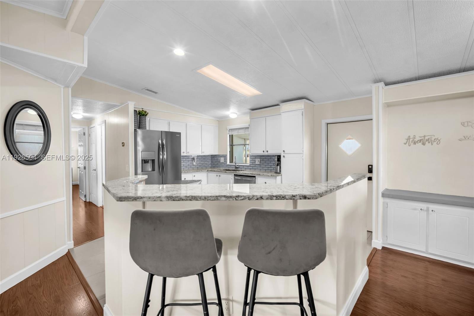YOU OWN THE LAND!! Move right into this gorgeous 3 bedroom, 2 bath home located in the desirable Ravenswood Estates community! Enjoy a modernized, open-concept kitchen, ample closet space, tile/LVP flooring, and a beautifully updated primary bathroom inside the generously sized primary bedroom. The main living area features vaulted ceilings and windows that bring in abundant natural light, creating an open, airy, and spacious feel. Home is originally a 2/2 with a converted room currently being used as a 3rd bedroom, offering flexible space for guests, office, or den. This double-wide home also includes a large carport, screened-in area, central A/C (2021), accordion shutters for peace of mind, and a spacious storage/laundry room. The private fenced yard offers serenity, and the home sits on a quiet dead-end cul-de-sac, providing peaceful living with no through traffic. The community features a clubhouse, heated Olympic-size pool, shuffleboard court, petanque court, tennis & pickleball courts, basketball court, playground, BBQ areas, and year-round activities. Low HOA—only $70/month. Association requires a $2,500 capital contribution at closing. All-ages community; leasing allowed after 1 year. Prime location near Dania Beach, Dania Pointe, Hard Rock Casino, shopping, dining, and FLL Airport, with quick access to I-95. Easy to show!! PRICED TO SELL! MUST SEE TODAY!!