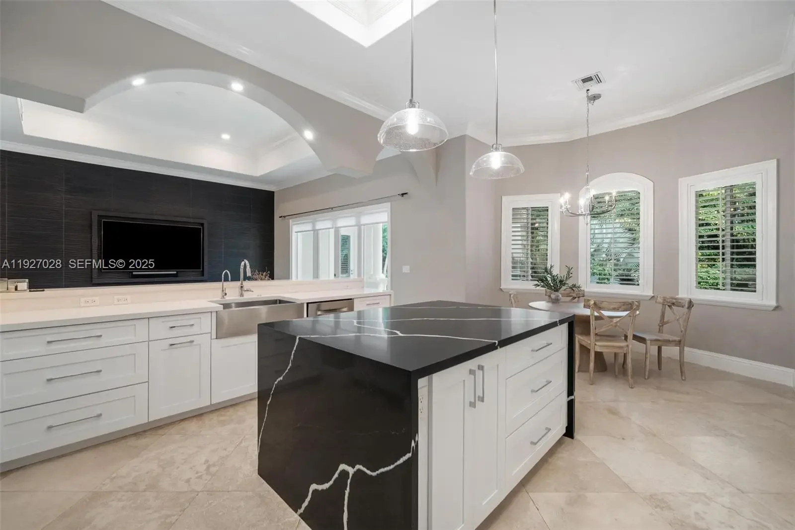 Experience newly remodeled sophistication at 6890 SW 94th Street, Pinecrest, FL an exceptional one-level estate featuring high ceilings throughout, set on 1 acre of mature, beautifully curated landscape. Ideally situated in North Pinecrest on a prime, private one-way street, this residence offers unmatched convenience, surrounded by top schools including Gulliver, Temple Beth Am, and Pinecrest Elementary. This stunning home blends timeless design with effortless, resort-style living. Expansive sun-filled interiors showcase soaring tray ceilings, elegant columns, and a seamless flow between formal and informal living spaces. Enjoy a sophisticated dining room, a spacious family room, and a beautifully updated chef’s kitchen complete with premium cabinetry, stone countertops, and a striking center island. Generously sized bedrooms feature warm wood flooring, abundant natural light, and well-appointed bathrooms. The luxurious primary suite offers a serene retreat with its spa-inspired bathroom, including a freestanding soaking tub, large glass-enclosed shower, dual vanities, and expansive custom closets. Step outdoors to your private tropical sanctuary: a sparkling pool and spa surrounded by lush greenery, covered terraces, and ample lounging areas perfect for both relaxation and entertaining. A long brick driveway, manicured grounds, and elegant entryways further elevate the property’s impressive curb appeal.