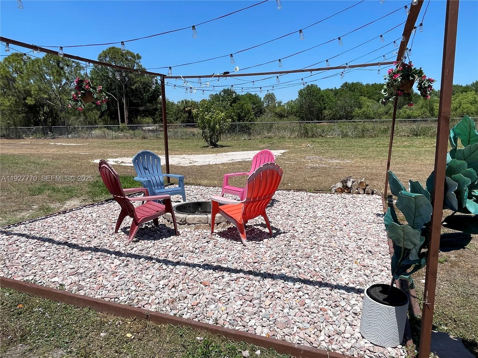 Beautifully furnished 3/2 home in Montura Ranches. Fully fenced on 1.25 acres. Fully furnished with state of the art appliances, security camera system, custom impact glass doors and windows. Ample porches front and back. Additional separate covered entertainment area, parking for a golf cart, above ground pool deck, fire pit area, large shed and many fruit trees! On well and septic with water filtration systems. Ideal for fishing and boating on Lake Okeechobee and other outdoor activities in the area. Close to US 27! Won't last, come and see soon!