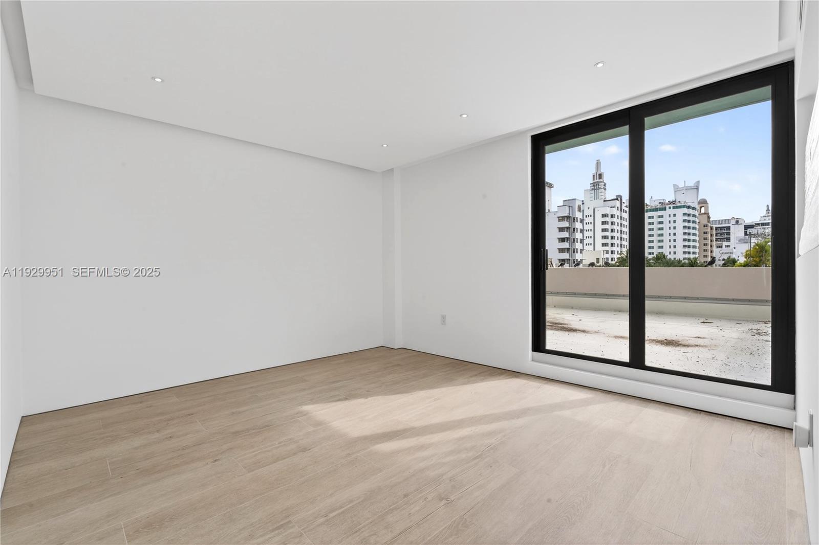 Fully renovated 1 bedroom plus den, 2 bath residence with an expansive living and dining area designed to comfortably host gatherings of 10–12 guests. The unit features a modern drop ceiling with recessed lighting, Bertazzoni Italian appliances, Miralis kitchen cabinetry, Thassos marble baths with Kohler fixtures, wide-plank porcelain floors by Peronda of Spain, new AC, and in-unit laundry with storage. Southeast exposure provides abundant natural light throughout the day. The primary bedroom offers direct access to a rooftop terrace with views toward the iconic, ultra-luxury Raleigh Hotel redevelopment. Ideally located at 1800 Collins Avenue just one block from the ocean, steps from the Convention Center, and minutes from Lincoln Road, dining, nightlife, and the Art Deco district, surrounded by major luxury hotel redevelopments. A compelling opportunity within one of Miami Beach’s most actively revitalized corridors.