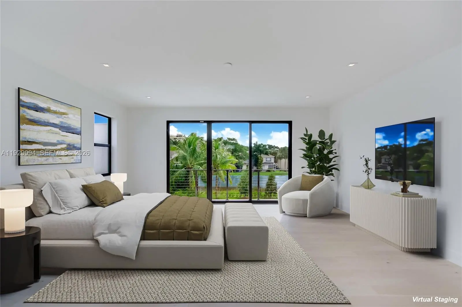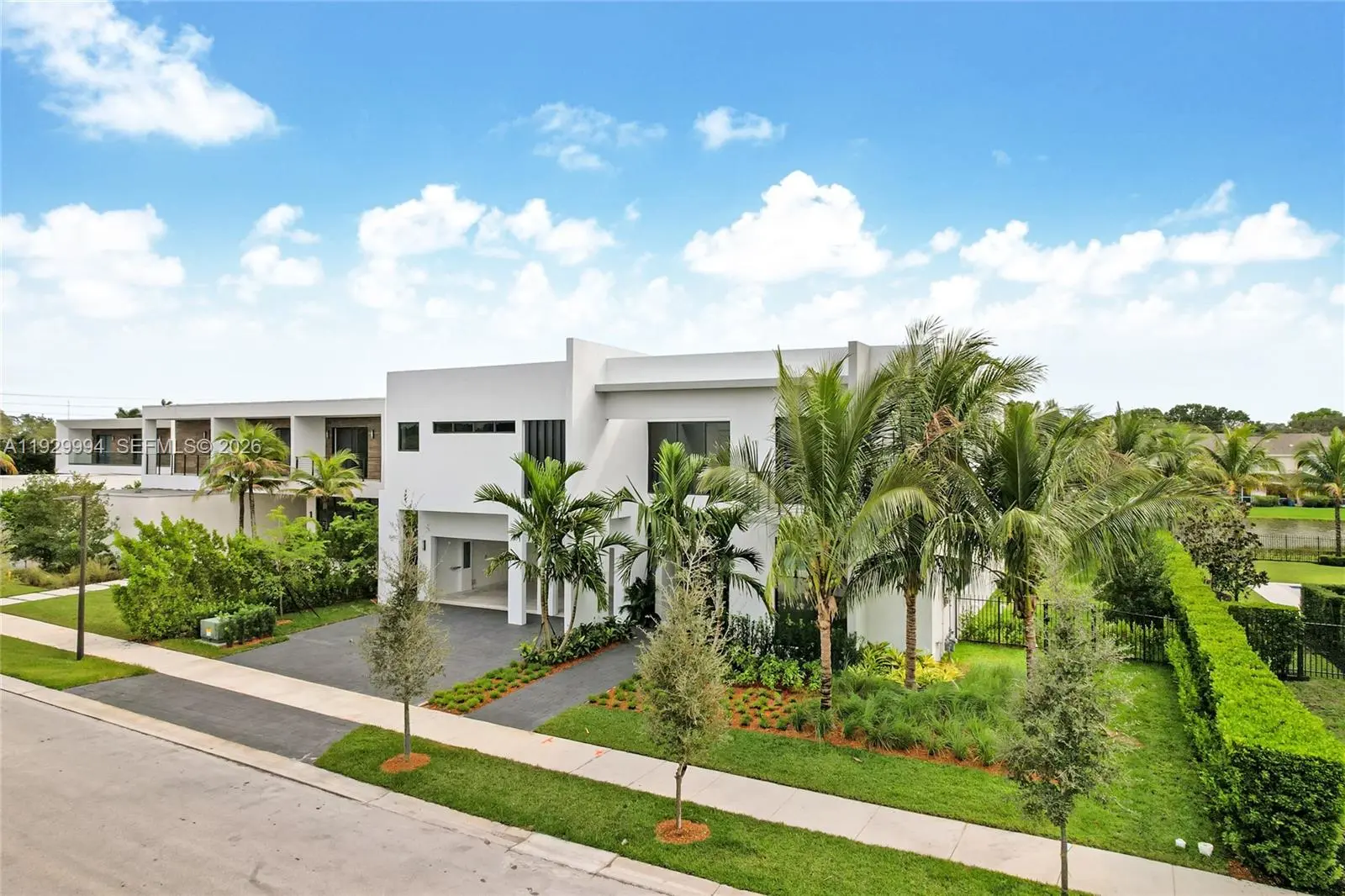 Stunning brand new two-story lagoon front house located in the exclusive community of Botaniko. It features 5 bedrooms, 5 bathrooms, a powder room, an attached 3-car garage, a huge backyard with a private pool with jacuzzi, and a summer kitchen. Be the first to live in this modern masterpiece designed by world renowned architect Mateu. Built in 2025, the house was just delivered by developer in December and boasts 3,810 Sq Ft of living space over a huge lot spanning 15,933 Sq Ft. The designer kitchen features top-of-the-line appliances (Sub-zero, Wolf, Asko), including a premium coffee-maker. Enjoy luxurious high ceilings and expansive windows, which provide abundant natural light and a seamless indoor-outdoor flow. The beautiful back yard offers lush landscaping, an oversized pool, and a beautiful lagoon view. The residence has extra upgrades such as 3-zone integrated sound system and security cameras. Botaniko Weston is located right in front of Bonaventure golf club, near top-rated schools, restaurants and shops.