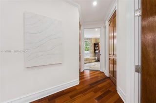 A gated Mediterranean-inspired retreat in South Coconut Grove, this two-story residence blends elegant design with seamless indoor-outdoor living. A dramatic central staircase anchors the open-plan main level, featuring a vaulted living room, formal dining, and a chef’s kitchen with access to private outdoor terraces. The lush backyard offers a pool with fountains, spa, summer kitchen, and covered patio. Upstairs, the expansive primary suite boasts dual walk-ins, a spa bath, and a grand private terrace. Designer cabinetry, volume ceilings, and a voluminous second-floor living area complete this timeless Grove haven.
