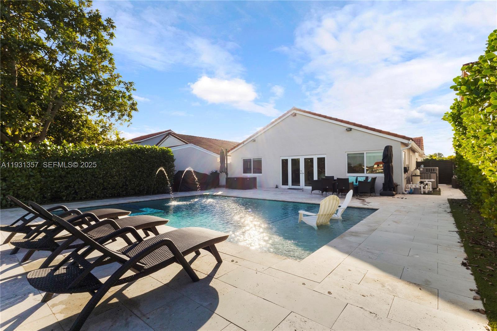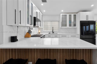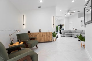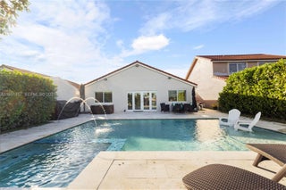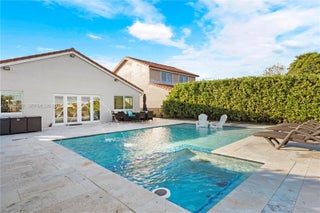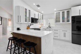 Step into elevated living in this beautifully remodeled home within a guard-gated community in Miami Gardens. Designed for discerning renters who value both style & comfort, this home blends modern luxury with a warm, inviting feel & thoughtful attention to detail thruout, including impact windows/doors for peace of mind. The chef’s kitchen is a striking centerpiece, featuring quartz waterfall counters with bar seating, an induction range with double ovens, & French-door refrigerator with hi tech display—ideal for entertaining or everyday living. Porcelain tile floors & LED lighting create a bright, refined ambiance. Outdoors, enjoy a private resort-style retreat with an oversized pool, sun shelf, & spa with heater & chiller for year-round enjoyment. A travertine patio, lush privacy hedges, & tranquil lake views set the stage for relaxed evenings, weekend gatherings, & effortless outdoor living. The primary suite offers a custom walk-in closet with built-in cabinetry & a spa-inspired bath featuring a dual glass shower, his and hers vanities, & anti-fog mirrors. Guest bedrooms include reach-in closets with custom cabinetry, while the secondary bath features glass subway tile and a soaking tub. Additional highlights include a 1 car garage, dedicated laundry room with high-capacity washer/dryer, access to premium community amenities including 24-hour security, pool, basketball court, & kids play area—delivering a secure, low-maintenance lifestyle with resort-style conveniences