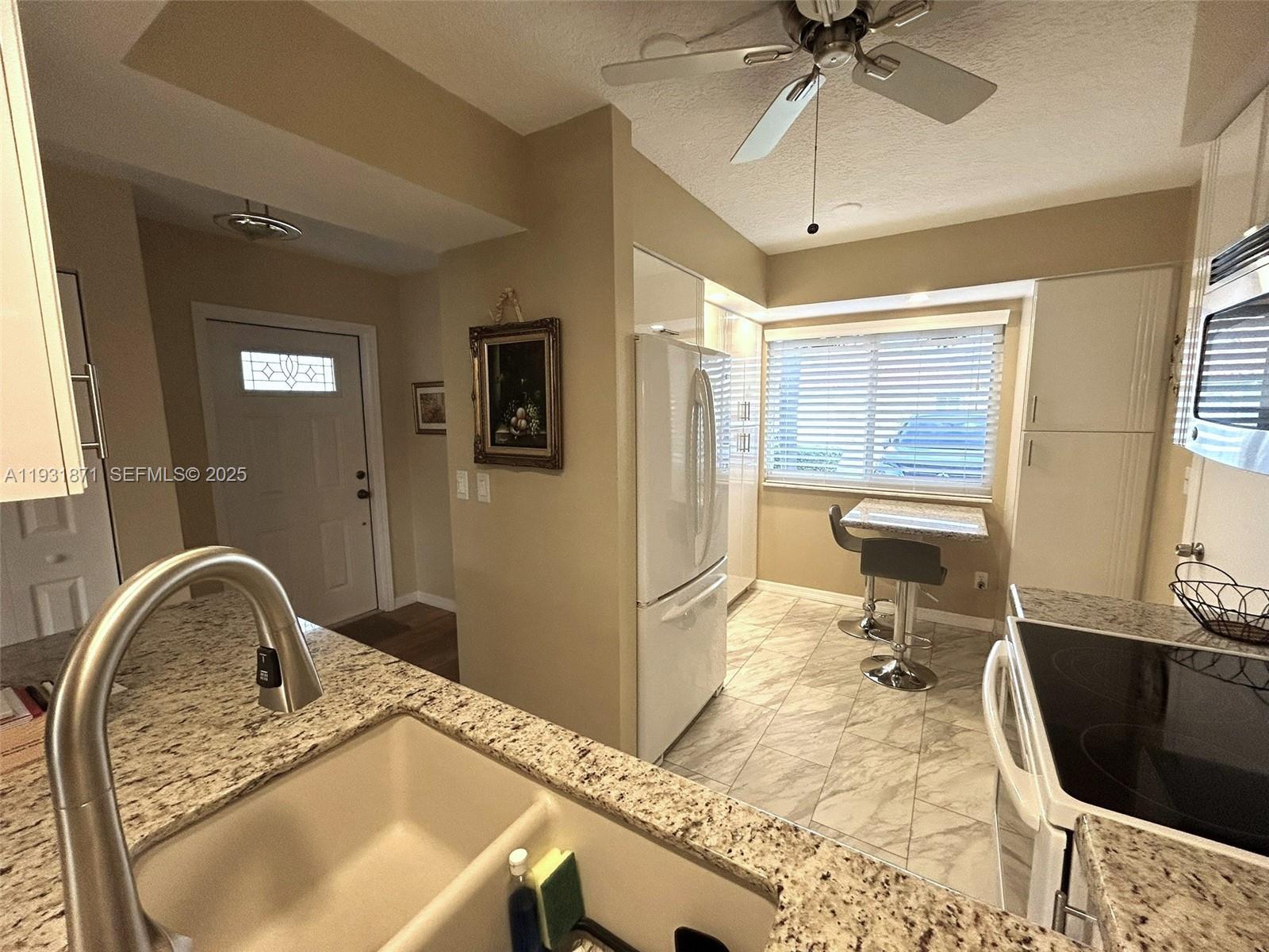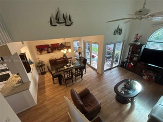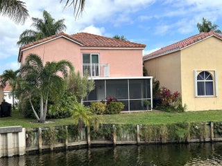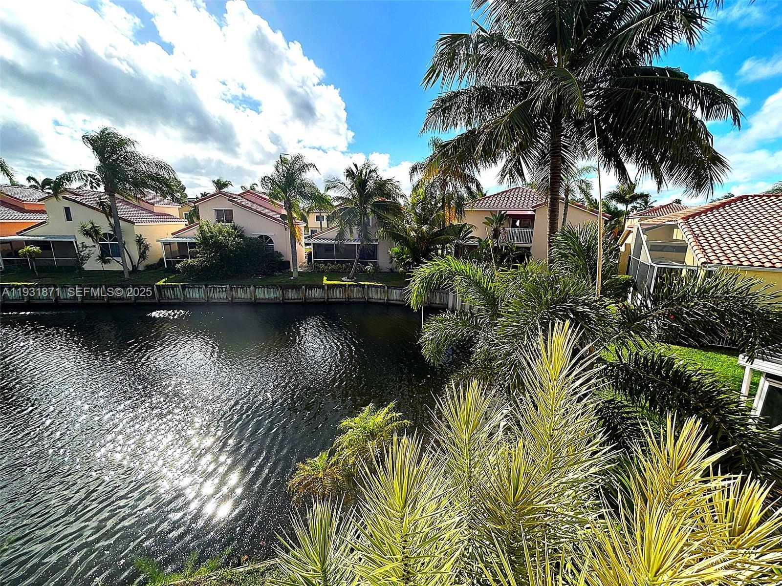 Beautifully remodeled lakefront residence with 3 bedrooms & 2.5 bath in a private gated community - Gourmet eat-in kitchen with custom luxury quality cabinets with lots of storage, granite countertop, new sink & appliances. All tile and laminate wood flooring throughout - Dining room with view on the lake - spacious living room with high ceiling - All new impact windows & doors (including new impact garage door) - New window treatments - 1 car garage with storage cabinets, workspace, electric garage door, washer/dryer. Central vacuum system - Master bedroom with elegant ensuite with spa like shower, 2 sink luxury wood vanity with granite countertop, large walking closet and your own private balcony with a peaceful view on the lake. Spacious second and third bedrooms with large closets. Permitted remodeling. New Barrel tile roof (2023). Large screened Patio overlooking the lake with room for dining, sitting and you will even have your own Spa/Jacuzzi and your own BBQ area. A few steps to the community private resort style island with Pool and picnic area. 1 mile from the Beach - 10 minutes to the airport, close to highways, shopping, fine dining and all services. Beautiful landscape with a fountain to the front of your new home - Low association fees. Luxury furniture may be purchased separately.