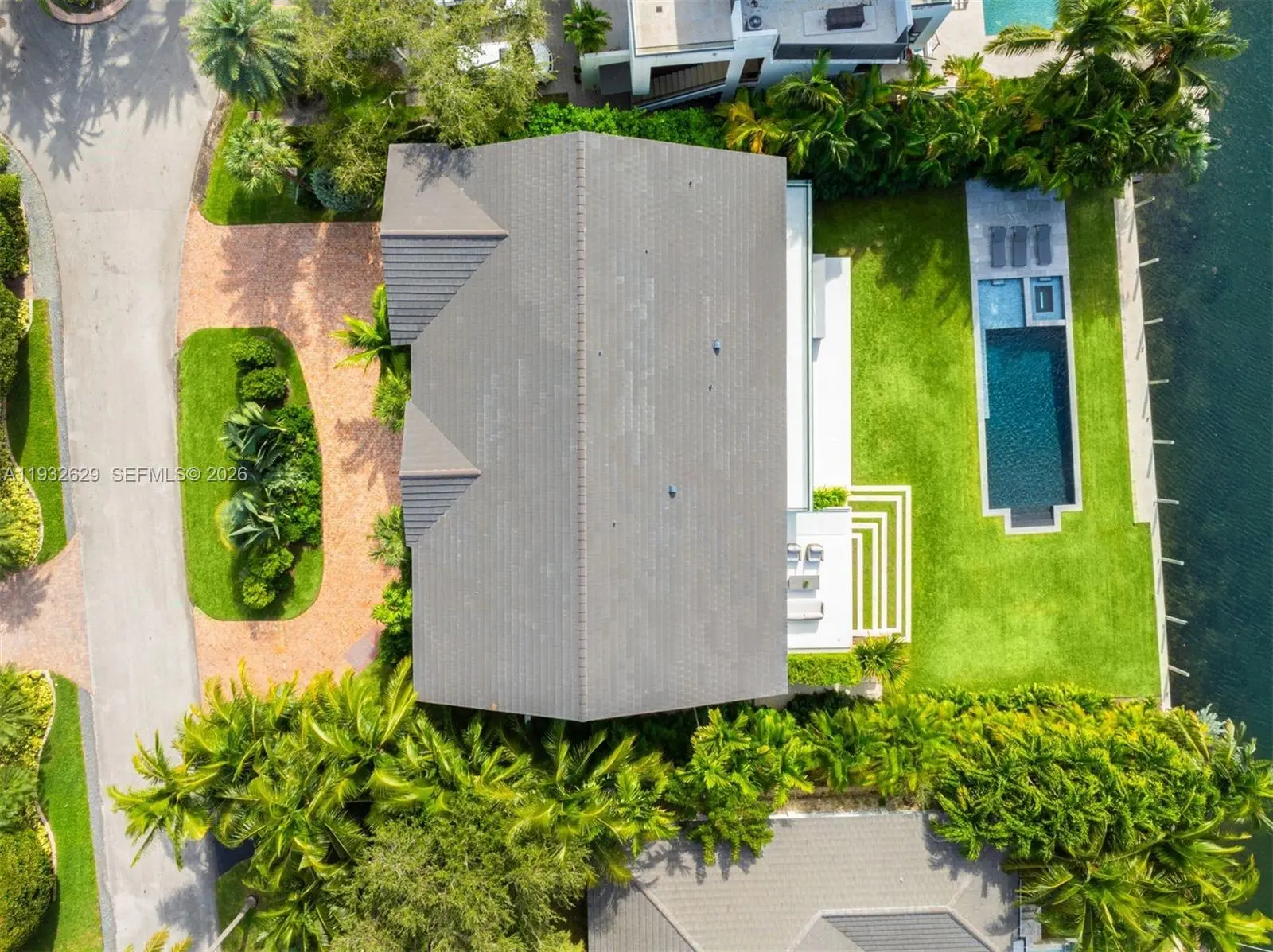Located in the gated Sunrise Harbor community, this completely renovated waterfront contemporary estate offers 7,435 total SF on a 14,500 SF lot with 100 feet of canal frontage and no bridges to Biscayne Bay. The 6-bedroom, 6 full and 1 half-bath home showcases a dramatic triple-height living room, panoramic water views, custom millwork, Lutron smart lighting, and high-impact glass throughout. A chef’s kitchen features bespoke cabinetry, leather finish marble countertops, Sub-Zero and Miele appliances, and glass-enclosed cabinets. The expansive primary suite includes vaulted ceilings, a private balcony, and a spa-like bath. Newly added flex and wellness spaces open up right onto the backyard with ample windows/natural light, including a bedroom/gym, cabana bath, steam shower, sauna, cold plunge and separate HVAC. Outdoors, enjoy lush landscaping, a circular driveway, heated saltwater pool with spa, expansive terraces, summer kitchen, glass railings, and a concrete dock with deep water docking for large boats/yachts—perfect for seamless indoor-outdoor waterfront living near top schools, Coconut Grove, and Coral Gables.