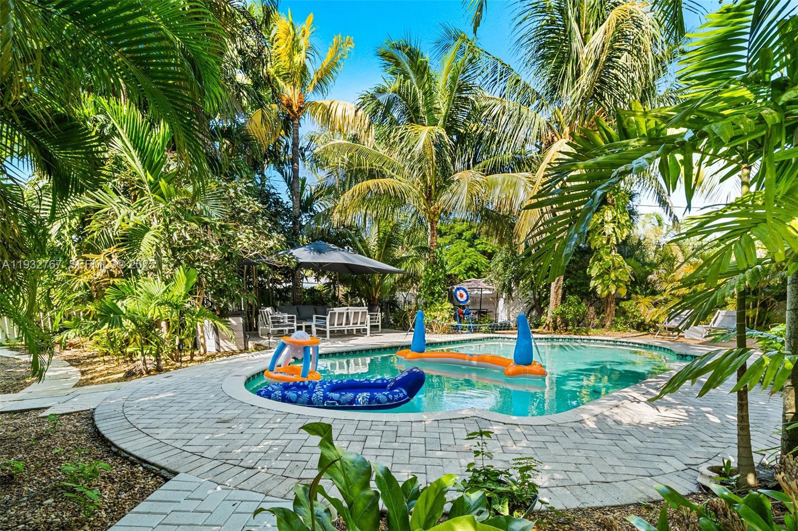 Experience beautiful Florida living in this 3-bedroom plus office, 3-bath home featuring a heated pool and lush tropical setting. The property includes a 1-car garage (under A/C) with hurricane-rated overhead door and side entrance. Freshly painted inside, the home offers updated kitchens and baths, classic terrazzo floors, impact windows and doors, for yours and house best protection. The welcoming open floor plan flows seamlessly from the breakfast area and family room to a stunning pool and backyard oasis—perfect for entertaining. The primary bedroom features vaulted ceilings and two private balconies. Additional highlights include two A/C units, two water heaters, and a large laundry room. The fully fenced yard includes a rear alley gate, and the west side of the home offers a paver walkway with discreet storage for trash bins. Located in a charming, walkable neighborhood near a scenic yacht basin and waterfront homes. Walk or bike to the beach—approximately 1.5 miles away. Enjoy nearby Frost Park, just a short walk, offering tennis and basketball courts, as well as several baseball fields. The city hosts an annual Art & Seafood Festival in the spring and a motorcycle display and competition every January. Minutes from Dania Pointe, featuring popular restaurants and shopping. A true small-town feel with a beautiful beach, fishing pier, and vibrant community—be sure to explore all that Dania Beach has to offer.