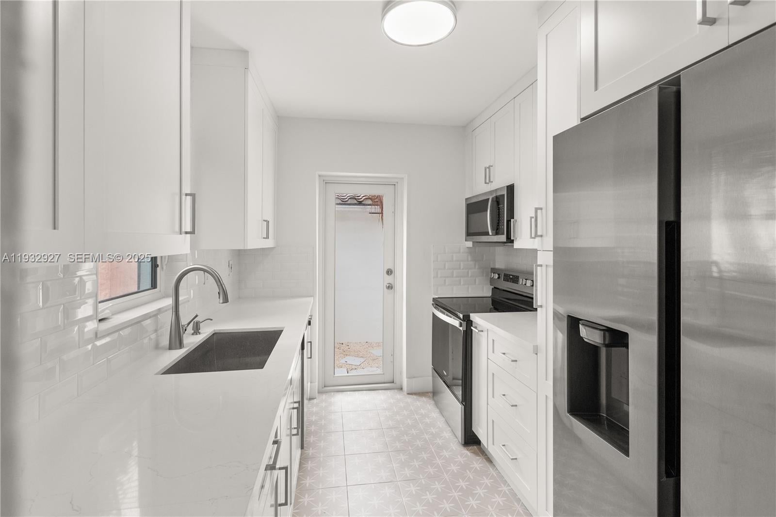 Spectacularly renovated home with an exceptional floorplan, new kitchen cabinets w/luxurious quartz counter top, new appliances, refinished wood floors, new bathroom, new impact windows & doors, decorative fireplace, new sprinklers & new landscaping. 3 bedroom 1 bath in main house and a full bath in garage. Easy to show, hurry and call now!