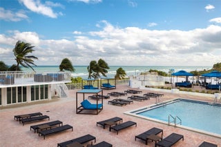 Spectacular corner residence in Miami Beach offering sweeping direct ocean and pool views from a mezzanine level. This substantially remodeled home features floor-to-ceiling impact glass, abundant natural light, and seamless indoor-outdoor living with an open balcony and fully glass-enclosed terrace. Two spacious bedrooms each with full bathrooms, plus a guest powder room and in-unit laundry. A Collins Ave full-service oceanfront building with 24-hour security, and top of the arts amenities including private gardens, private boat dock, and direct beach access. Ideal as a primary residence, second home, or investment.