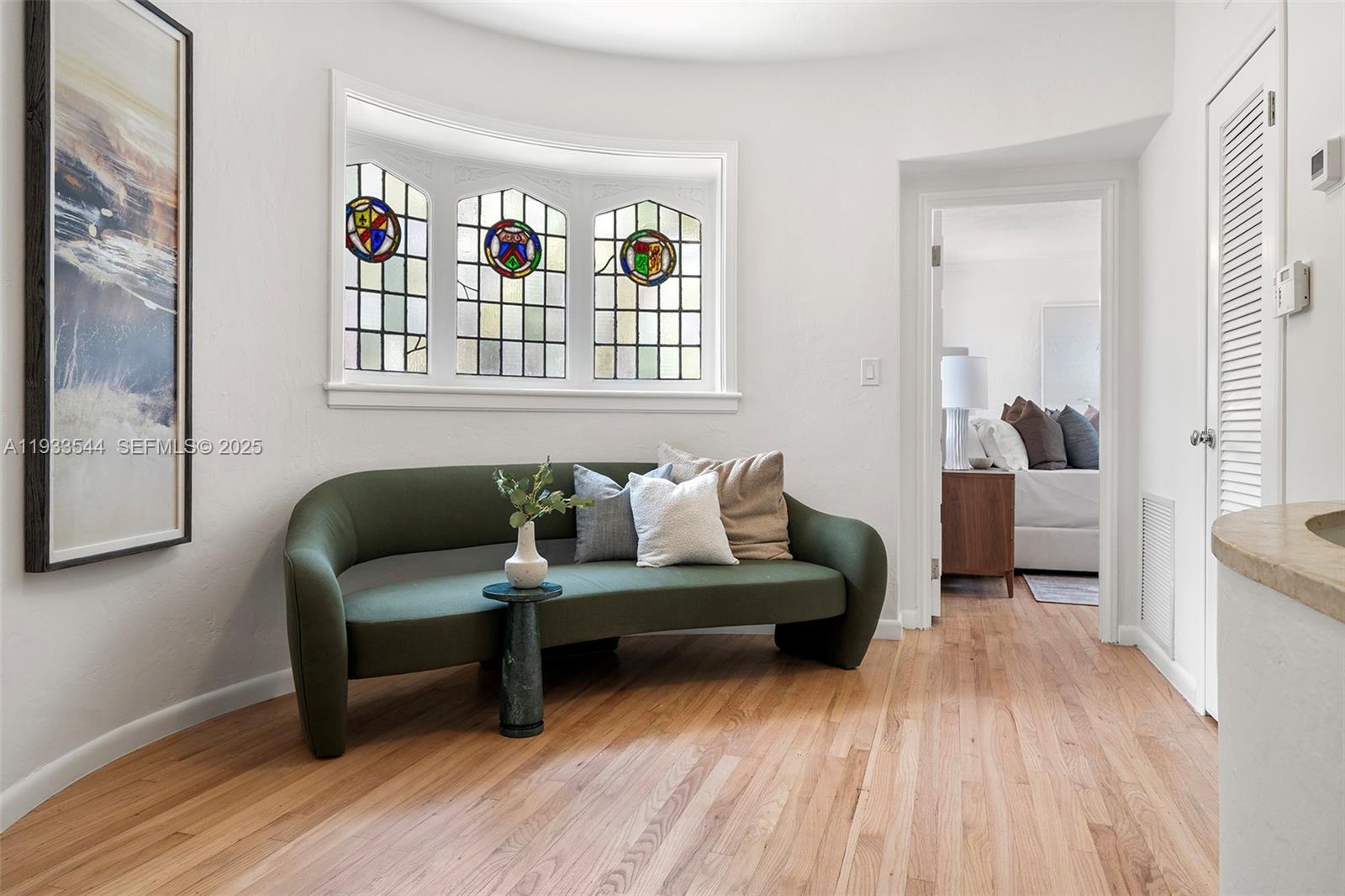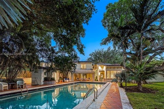 Rare mediterranean estate exuding sophistication and beach vibes in the heart of Miami Beach. Designed by acclaimed architect Carlos B. Schoeppl, this recently updated home is marked with striking original details, living room with cathedral beamed ceilings, fireplace, entertainment room with oak bar, library with soaring ceilings and masterful craftsmanship. The 31,320-SF double-platted corner lot stretching from Flamingo to Pinetree Drive, is secluded with tropical privacy landscape and complete with an immense backyard with lap pool, playground, and space for more amenities. Located minutes to the beach, Bayshore Park, Golf Course, South Beach. Own one of the largest dry lots in MB!