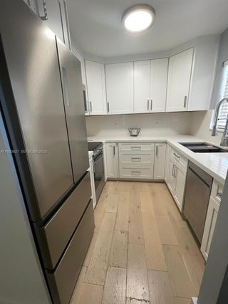 Super find in the heart of south beach. Quiet street only 5 blocks from the beach. This apartment is completely redone, in move-in condition. Only lightly used as a vacation home. Extra details include washer, dryer, ceiling and lighting fixtures, dimmers, new cabinets and appliances, new flooring, completely new bath with tub, new central air with electric thermostat, new interior doors, even the electric panel was replaced. The building is gated, the unit is at the end of the catwalk on the rear corner so it is quiet and private. The view is very nice. It is airy overlooking a low rise home with east exposure and a perfect sized balcony for a couple pieces of furniture. There are windows in every room. The rooms are very spacious with a walk in closet in the principal bedroom. The building has a new roof. Reserves are part of the maintenance fee. No pending assessments and all building inspections are up to date. Building was painted 2 years ago. One gated parking space is included.