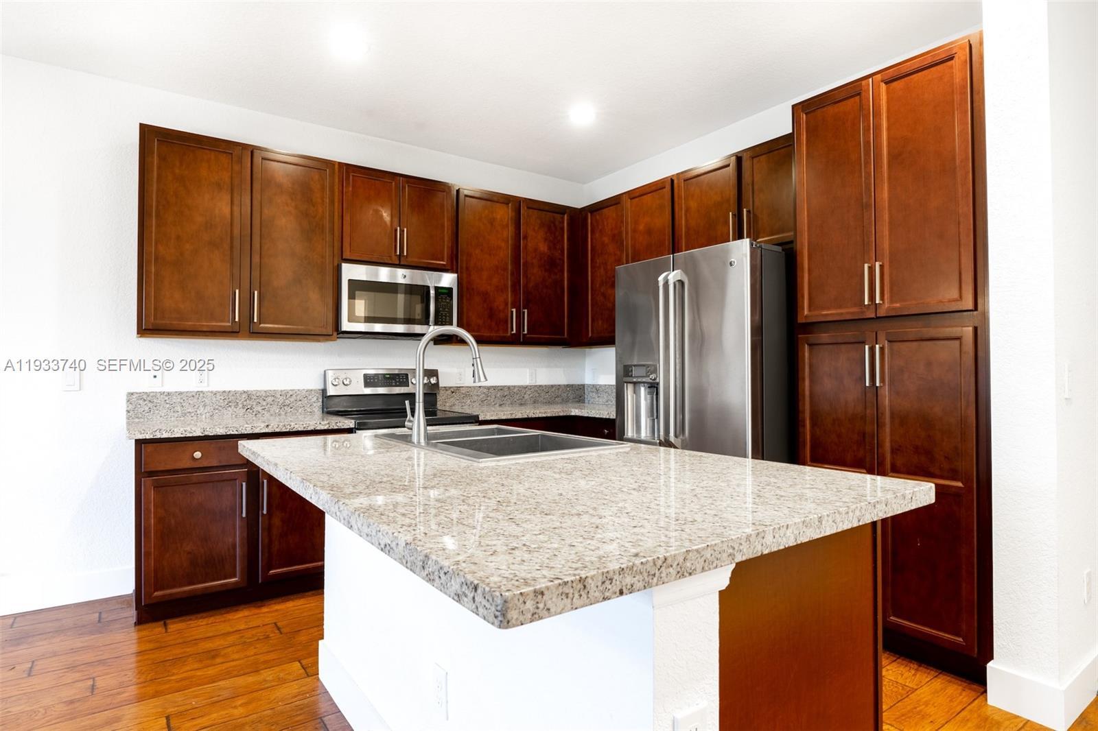 Beautiful townhouse located in the serene community of Saddle Bridge, this residence features an expansive, airy layout encompassing 3 bedrooms and 2½ bathrooms, complemented by a single-car garage and high-impact windows and doors for added safety. The kitchen, a focal point of the home, boasts modern stainless steel appliances, elegant granite countertops, and refined wooden cabinetry. The flooring is thoughtfully designed with high-end vinyl planks throughout. The spacious master bedroom includes a large walk- in closet, while the master bathroom is equipped with dual vanities for convenience and comfort. Near shops, restaurants, major hospitals, universities & all major highways. PLEASE NOTE THAT THIS UNIT DOES NOT HAVE ACCESS TO COMMUNITY POOL NOR CHILDREN'S PLAY AREA PARK.