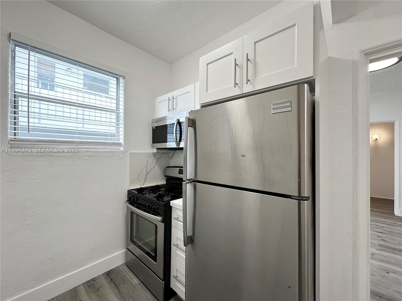 Brand new everything! Sparkling, immaculate and fully renovated studio with a separate den/dining room featuring gleaming new floors and baseboards, new a/c, a gorgeous stainless steel and quartz kitchen with new cabinets and a gas range, two enormous walk-in closets, fresh paint and a gorgeous bathroom blanketed in imported porcelain. Incredible natural light. Wonderful gated building with a perfect courtyard in front and laundry in back. The location is perfect, just steps to the beach, Espanola Way, Flamingo Park, South Pointe, Lincoln Road and more. Call today, very easy to show and will go fast