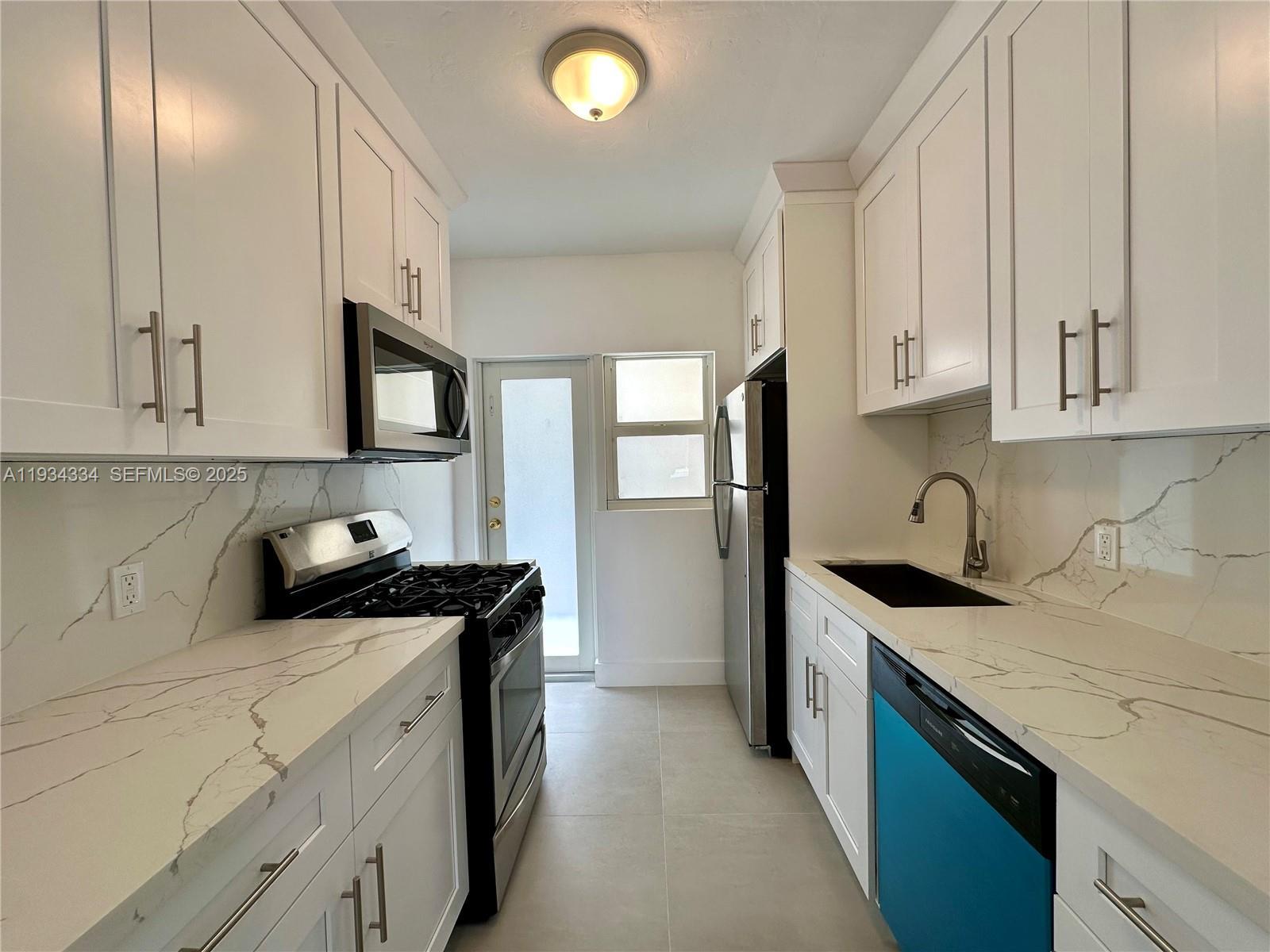 Brand new everything. Sparkling, immaculate and fully renovated ground-floor unit featuring gleaming new floors, a gorgeous stainless steel and quartz kitchen with new cabinets, a dishwasher and gas range, impact windows and doors throughout, walk-in closets and a gorgeous bathroom blanketed in Italian porcelain. Incredible natural light in this unit and great outdoor space off the kitchen balcony. The building is impeccably maintained with laundry in back and a fresh paint job. The location could not be better on tree-lined Bay Drive, just steps to the posh Normandy Isle fountain, farmers market, sushi, gelato, happy hour spots and the beach. Call today, very easy to show and a very easy and fast approval process.