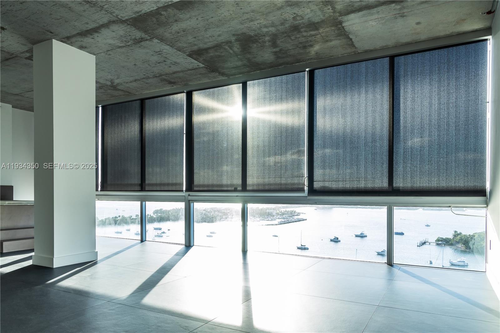 AVAILABLE JANUARY 15th - SPACE 01 LOFT STYLE CONDO - CORNER UNIT LINE This apartment was completely renovated in 2024 with high-end Italian finishes and all new appliances. Unit features 1906sf, 12ft Ceilings, 2 Bedrooms, 2 Full Bathrooms, 2 Assigned Parking Spots in secure garage, EV charging, Built-out closets with large Walk-though Primary Closet. Jacuzzi tub in unit with view, new Washer and dryer in unit. This building is a quiet oasis away from the city noise. Located in North bay Village. Close proximity to restaurants, shopping and beaches. Easy commute, 3.5 miles to I95. This building has a Rooftop Pool with 360 degree views of the water, Jacuzzi, Expansive Gym & Waterfront Backyard with BBQ. Pet Friendly. Ideal Location in Miami. No Smoking.