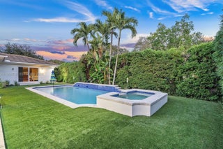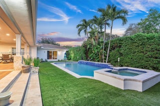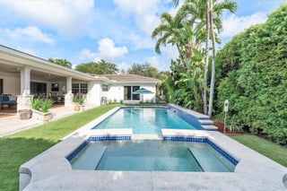 The Palm Pavilion Oasis — a private, resort-style pool and spa sanctuary centered around luxurious outdoor living. Beautifully maintained corner-lot pool home in the heart of Miami Shores, offering exceptional privacy and seamless indoor-outdoor living. Surrounded by lush tropical landscaping, this residence feels like a private retreat while remaining close to everything the neighborhood has to offer. The backyard is designed for both entertaining and everyday enjoyment, featuring a stunning resort-style pool with spa, manicured grounds, and a luxurious covered outdoor deck. The outdoor living area includes a built-in kitchen with bar seating and ample space for dining and lounging, making it ideal for hosting gatherings year-round. The corner lot enhances curb appeal and privacy, while the thoughtfully designed layout allows for effortless flow between interior and exterior spaces. Located just minutes from the Miami Shores Country Club, top-rated schools, parks, dining, and shopping. A rare opportunity to enjoy the best of Miami Shores living. Impact windows, 5 year old roof.