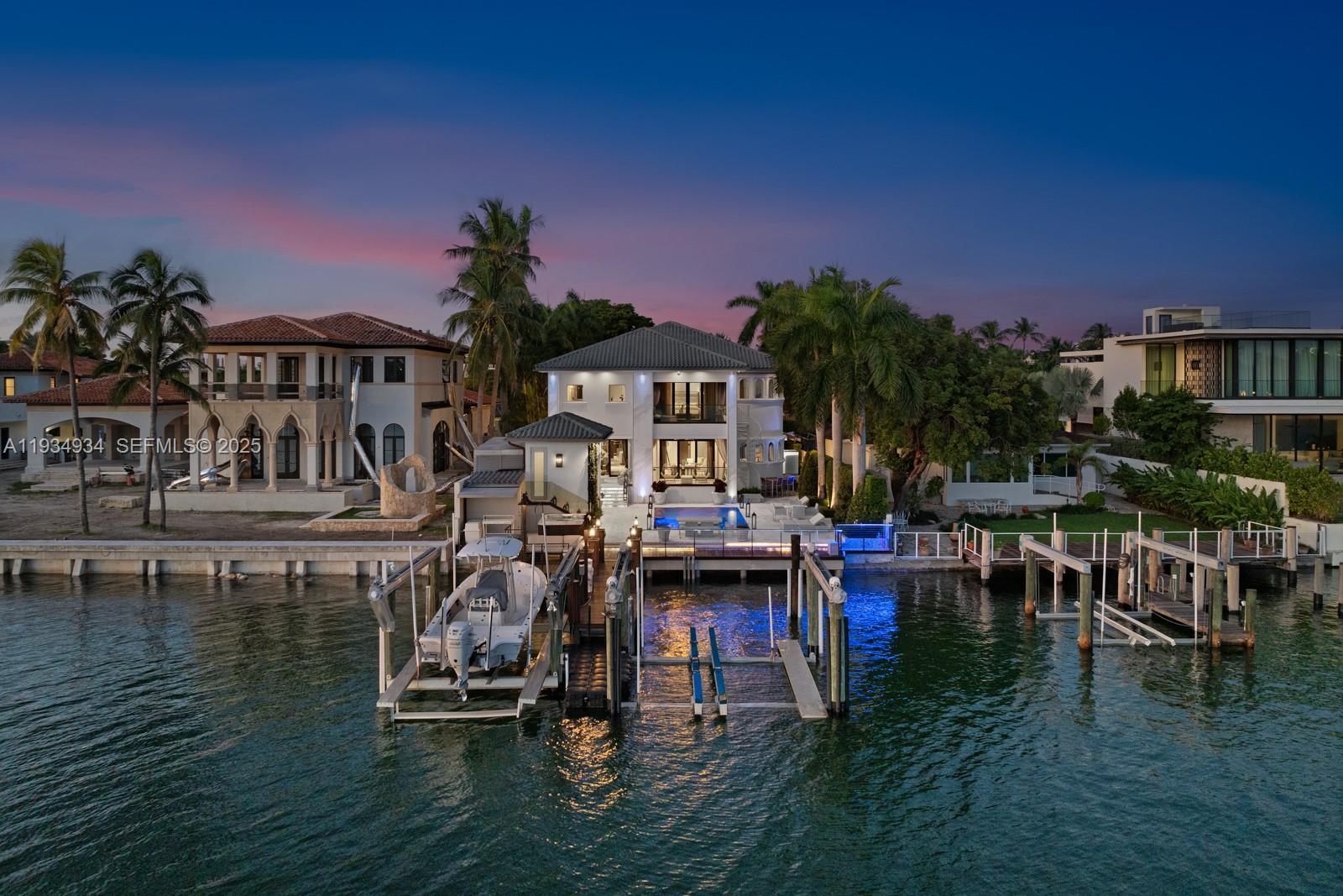 Welcome to luxury waterfront living at 176 S Hibiscus Drive in the heart of Miami Beach! This stunning 6-bed, 6.5- bath residence offers 60 feet of prime waterfront on one of the most prestigious islands in Miami Beach, with breathtaking views of downtown Miami. Equipped with two boat lifts—one holding 40,000 pounds & the other 20,000 pounds—a private dock,& summer kitchen, this home is a boater’s dream. A generator that powers the entire home. Inside, the high-end finishes & smart home technologies are evident. Mia Cucina kitchen is a chef’s delight, complemented by an elegant bar, & wine cellar. Unparalleled convenience, comfort,& security. Located on the prestigious Hibiscus Island, enjoy the best of Miami Beach living—close to world-class shopping, dining, & entertainment.