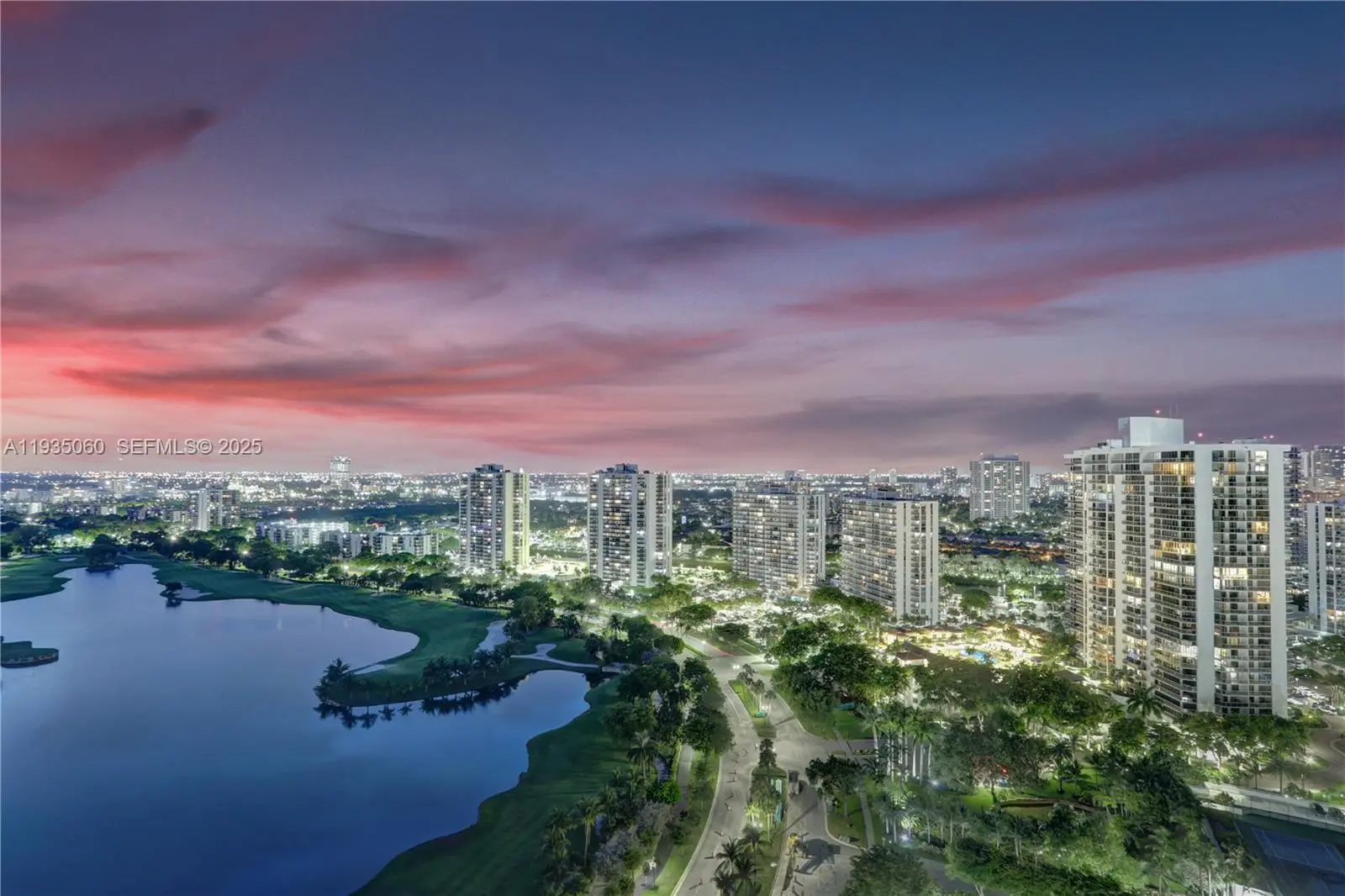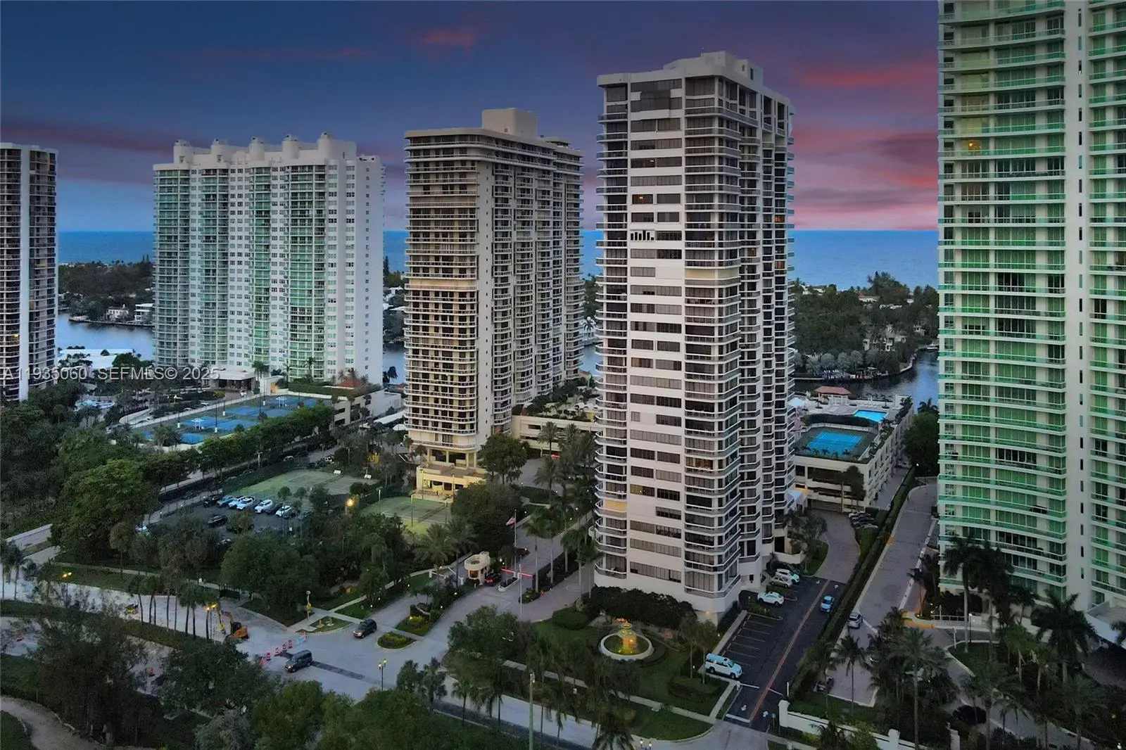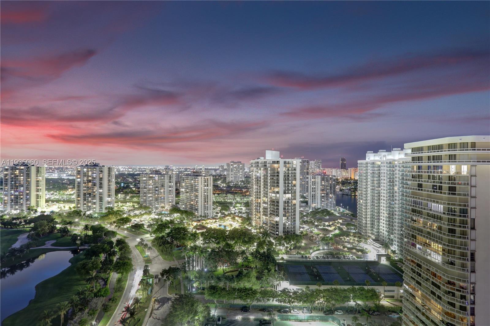 Experience stunning sunset views overlooking the ocean, Intracoastal, Turnberry Golf Course, and a tranquil lake from this bright 2 BD / 2 BA residence with a desirable split floor plan at The Landmark in Aventura. Enjoy a remodeled kitchen featuring modern white cabinetry, stylish backsplash, sleek quartz countertops, stainless steel appliances, and a cozy breakfast nook. Tile flooring flows throughout the residence. Additional features include an in-unit washer and dryer. An additional storage unit. Storm shutters and a private balcony perfect for relaxing after a long day. The Landmark is a prestigious, beautifully maintained building offering peace of mind, having passed its 40-year recertification, with reserves in place and no new assessments. Residents enjoy resort-style amenities including a heated pool, Jacuzzi, tennis court, fitness center, sauna, business center, concierge, billiard room, 24-hour security, and valet service. Ideally located in the heart of Aventura, just minutes from the beach, Aventura Mall, world-class dining, houses of worship, Sunny Isles Beach, top-rated schools, and the scenic walking path known as “The Circle.” Close to shopping, restaurants, and entertainment. Easy to show!