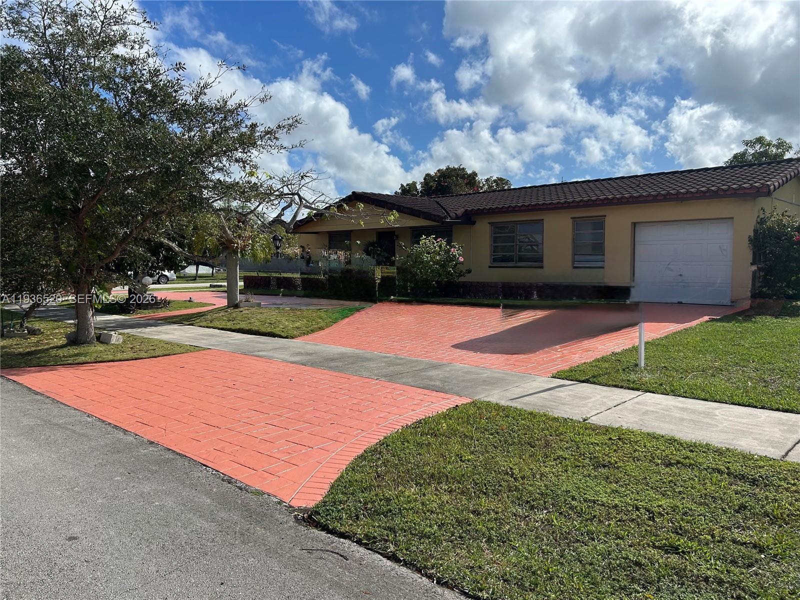 Excellent opportunity to buy this corner one-story single family home at a prime location in Kendale Lakes. 4 bedrooms, 3 full baths. Situated on an expansive 10,450 sq. ft. lot this home offers standout curb appeal enhanced by an expanded circular driveway that provides ample parking and convenience. This home offers endless opportunities to decorate and update to your own taste. One bathroom was recently remodeled. Charming kitchen with breakfast area that opens to a spacious covered terrace and beautiful backyard with fruit trees. Large useful shed for storage. 1 car garage has been set-up as an in-laws suite or guest room with private entrance. No HOA. Easy to show. Call LA.