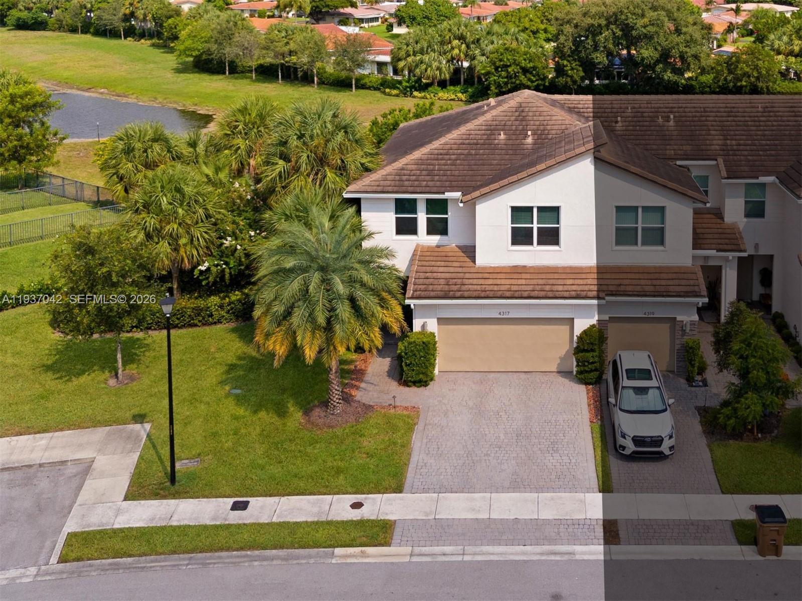 HOA REQUIRES MINIMUM CREDIT SCORE OF 650 FOR ALL APPLICANTS NO EXCEPTIONS Waterfront Townhouse - End unit extra windows desirable gated Veleiros community. Energy-efficient smart home built in 2020 impact windows & doors. Upgraded landscaping with Sylvester Palm and covered entry - upgraded flooring, 2 car garage + 2 spots outside and guest parking very near Island kitchen with quartz countertops, deluxe appliances and cabinets upgraded faucet and reverse osmosis system. Whole house water filtration. Spacious Primary Suite with an en-suite bath offering a waterfront view. On opposite side - two guest bedrooms a full bath and laundry room upstairs. Clubhouse offers heated swimming pool, modern gym, playground, social area, screened picnic pavilion and lounging deck. Located between I-95 and the Turnpike minutes from beach, dining, casino, grocery stores