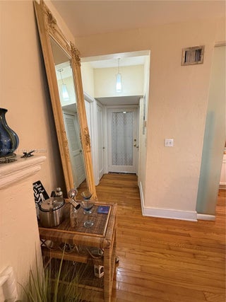 Furnished, bright, and welcoming one-bedroom filled with natural light, warm hardwood floors, and high ceilings. Decorative fireplaces, including one in the bedroom, add character and a welcoming touch. Step out onto a private balcony surrounded by lush greenery, creating a peaceful spot to relax and unwind. Just one block from Lincoln Road’s shops, restaurants, and conveniences, this condo offers the perfect blend of comfort, charm, and city accessibility.