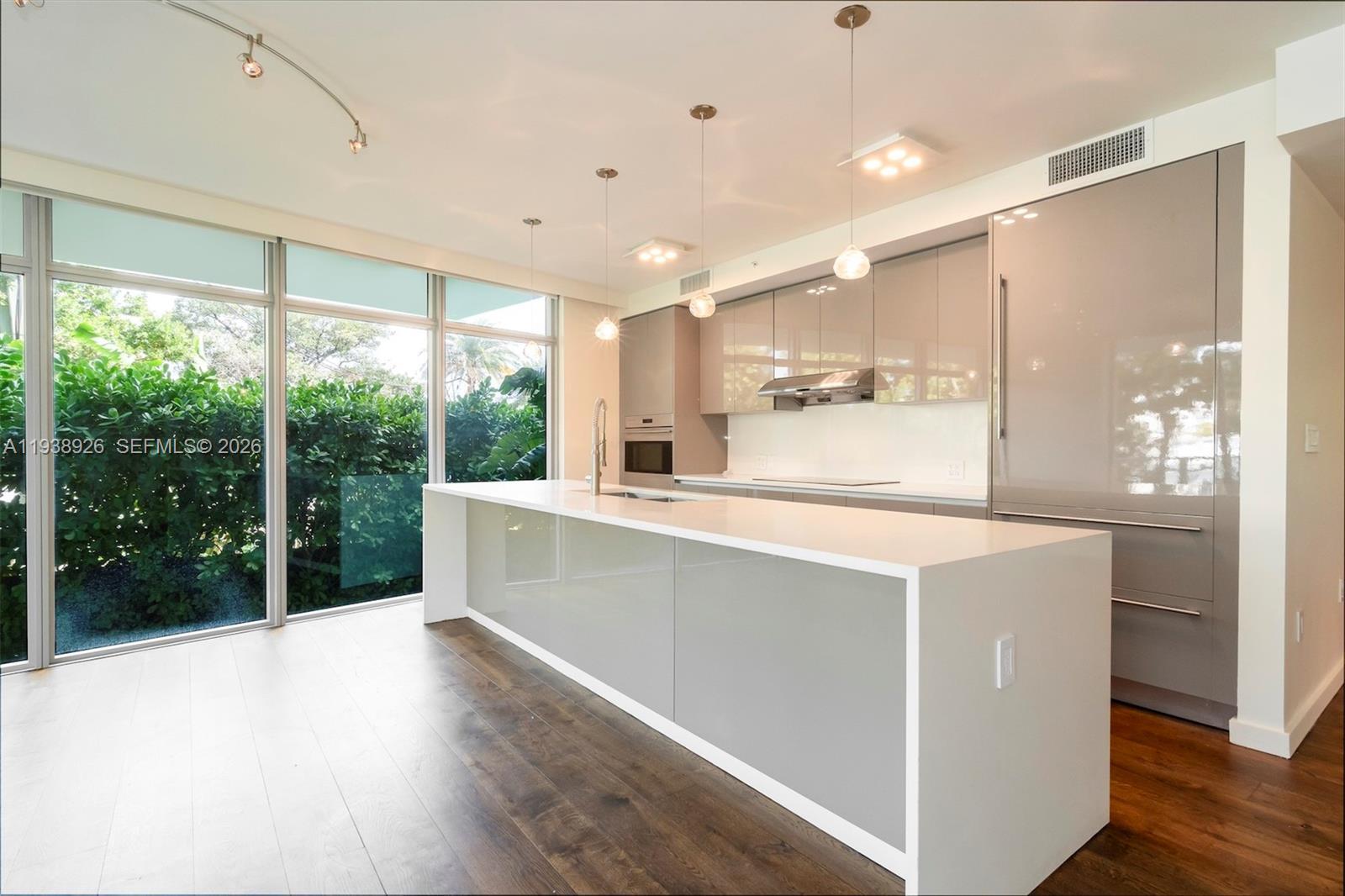 Corner lanai living at Palau Sunset Harbour with bay & Intracoastal frontage. This 3-bedroom, 3.5-bath layout offers 1,820 SF with three en-suite bedrooms, new wood floors, and an Italkraft kitchen appointed with Wolf and Sub-Zero appliances. Enjoy true indoor-outdoor space with a private 1,455 SF landscaped garden featuring a plunge pool, plus a covered balcony for easy lounging or entertaining. Building amenities include 24-hour concierge and lobby security, valet parking, fitness center, library, elevator, and a below-ground pool, along with high-impact windows. Deeded dock access and three garage spaces complete the offering. Walkable Sunset Harbour near top dining, studios, and shopping. No boat slip. Minimum contract of 12 months.