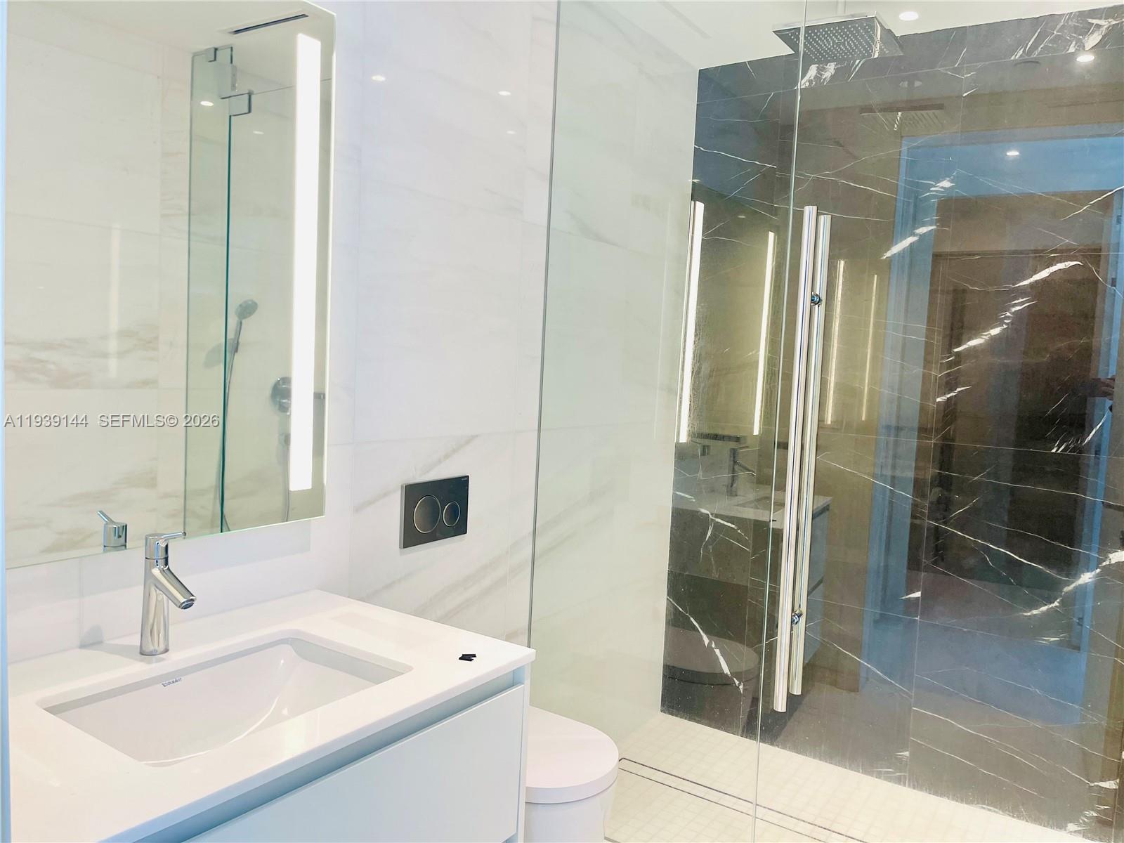 Signature north-facing waterfront residence for rent at Aston Martin Residences, featuring a rare private foyer entry that sets a tone of privacy and exclusivity from arrival. The expansive great room is framed by an iconic curved glass façade, flooding the space with natural light and offering open canal-to-ocean views. Designed for refined executive living, the layout provides a clear separation between social and private areas. Fully integrated electric shades throughout the entire residence, including bathrooms, enhance comfort and functionality. Generous walk-in closets with direct water views and an excellent balcony create a seamless indoor-outdoor lifestyle. Residents enjoy world-class amenities including resort-style pools, private marina, wellness spa, state-of-the-art fitness center, concierge services, and exclusive lounges. A sophisticated waterfront home defined by design, discretion, and elevated living.