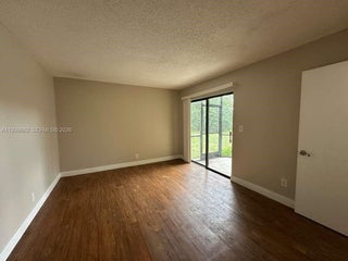 Rarely available and beautifully maintained, this spacious 3-bedroom, 2-bath first-floor corner unit offers comfort, style, and convenience. Enjoy the ease of an in-unit washer and dryer and a thoughtfully updated kitchen featuring maple cabinetry and upgraded countertops. The primary suite includes a spa-like bathroom with a jacuzzi tub and elegant travertine tile. Wood floors flow seamlessly throughout the home, creating a warm and inviting atmosphere. Step out to the large screened patio and unwind with tranquil green views—perfect for relaxing or entertaining. A fantastic opportunity you won’t want to miss. Schedule your private showing today!