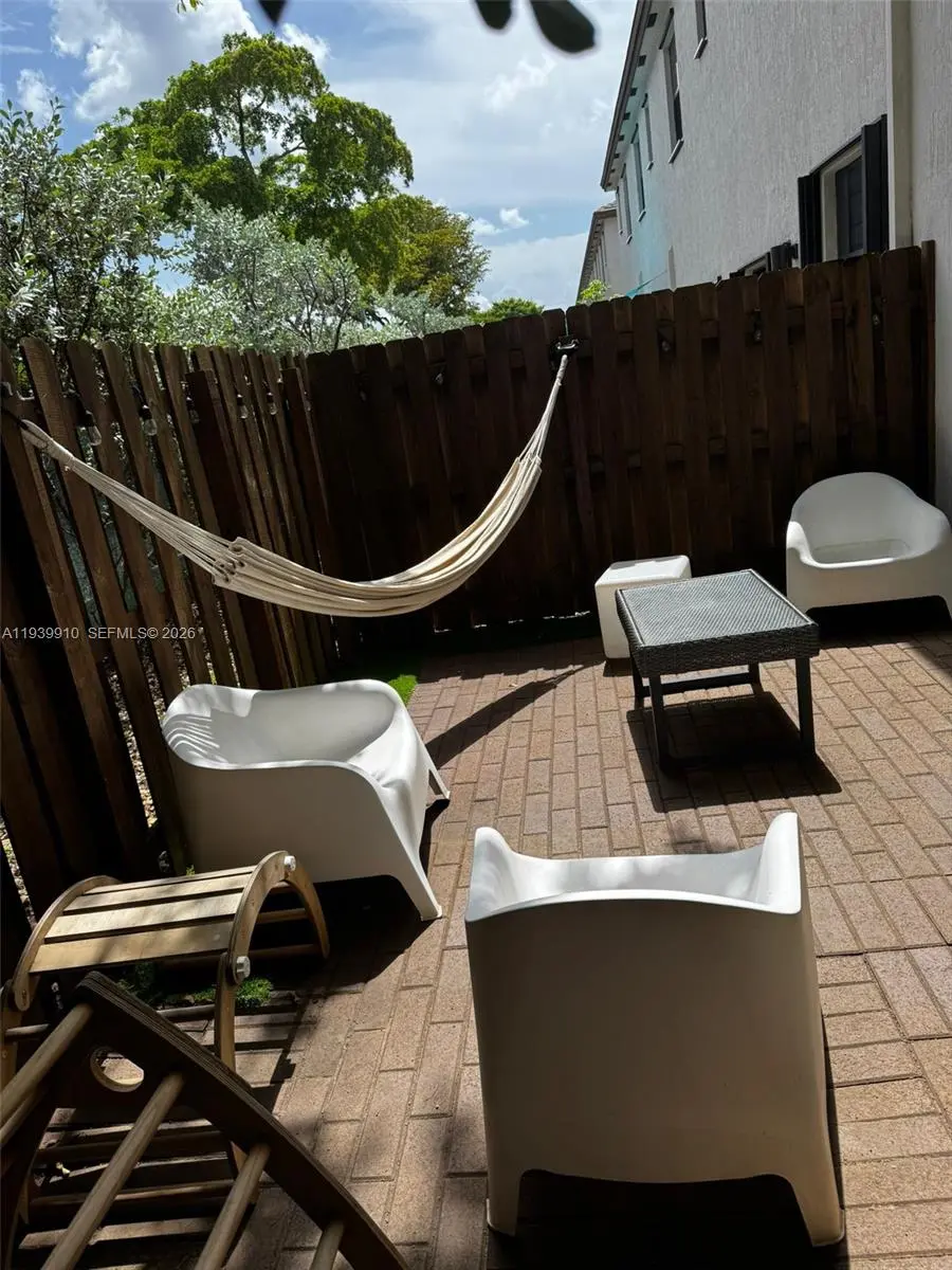 Welcome to this beautifully maintained 3-bedroom, 3-bathroom townhouse in the sought-after Via Ventura community. Built in 2019, this spacious 1,320 sq ft home offers modern finishes, a smart layout with one full bedroom and bathroom on the ground floor, and a private fenced patio perfect for outdoor relaxation. The open-concept living area features tile flooring, while the upstairs bedrooms offer plush carpeting. Enjoy the convenience of two or more parking spaces and ample street parking. Gated community with secured entry for peace of mind. Ideally located near major highways, Aventura Mall, top-rated schools, and beaches. No HOA approval needed. Low HOA fees and no rental restrictions—perfect for end users or investors! Move-in ready and easy to show—schedule your tour today!