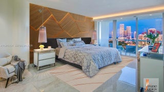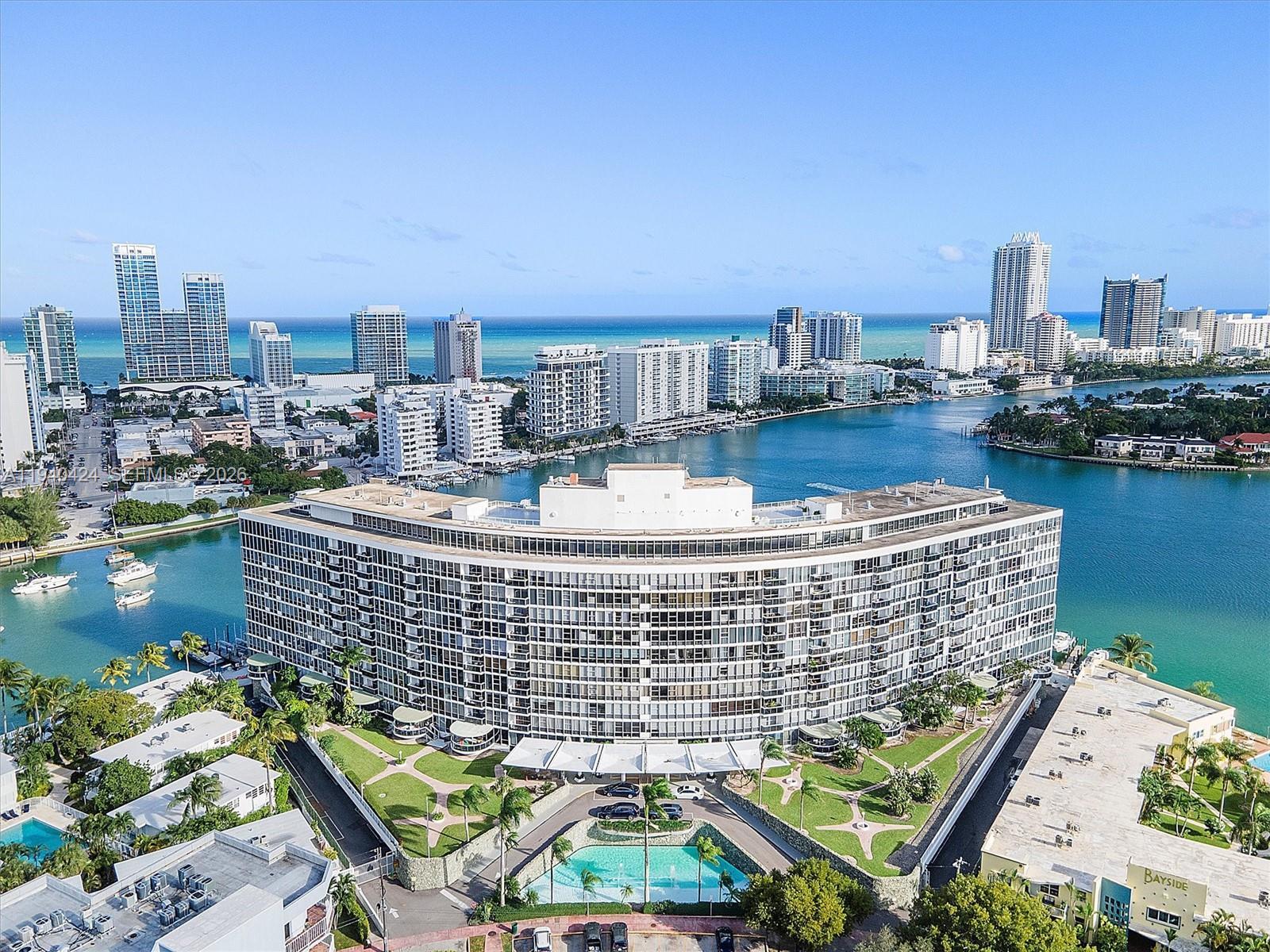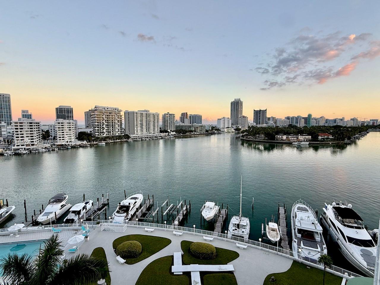 Magnificent top-floor residence in Miami Beach (NoBe) offering breathtaking panoramic views of the ocean, Intracoastal, and bay from the prestigious King Cole Building. Floor-to-ceiling impact glass walls flood the home with natural light, showcasing its iconic historic MiMo architecture. Fully renovated, this modern waterfront home delivers a serene, resort-style lifestyle just a 15-minute walk to the beach. Designed for comfort and entertaining, it features an expansive open living area and a large balcony with stunning bay views. Designer lighting, elegant finishes, dual vanities, a beautifully organized walk-in closet, and thoughtful upgrades throughout complete this exceptional residence. The home also includes a rare oversized laundry room, equipped with washer, dryer, utility sink, built-in ironing board, and extensive storage closets for cleaning supplies. While many units convert this space into a den or office, this residence preserves it as a dedicated laundry/utility room. Parking is generous, with one assigned space for two vehicles plus valet, totaling three spaces included. The HOA covers all utilities, including electricity, unlimited hot water, water, pest control, and super high-speed 1-gig fiber-optic internet (1GB in / 1GB out), offering unmatched convenience. Perfect for those who love to entertain, relax, and enjoy the best of Miami coastal living, this top-floor waterfront home combines timeless architecture, modern luxury, and effortless living.