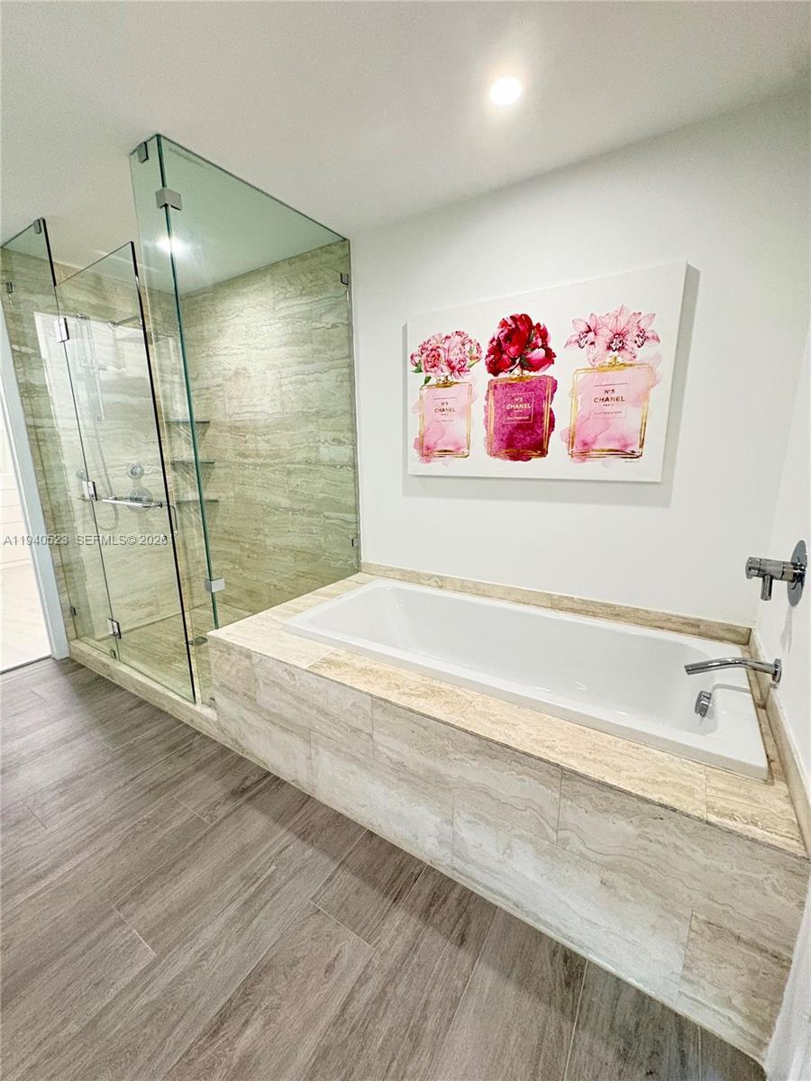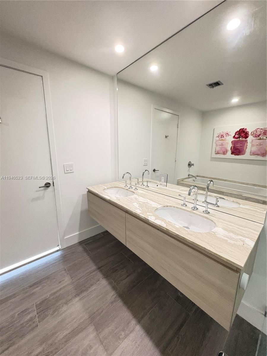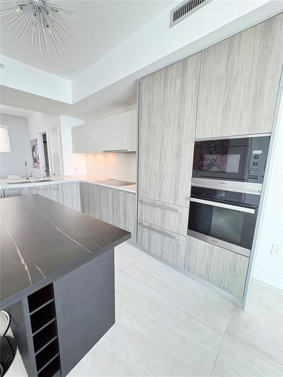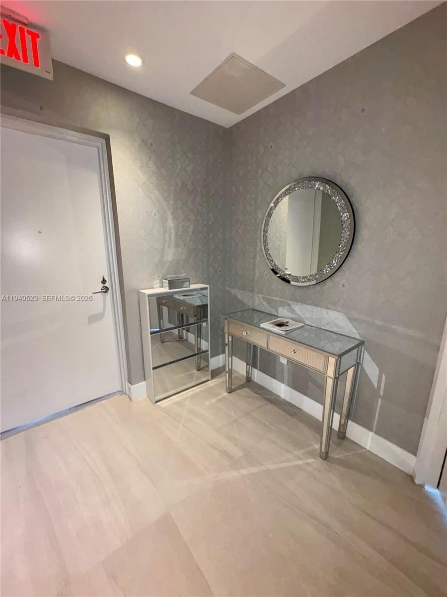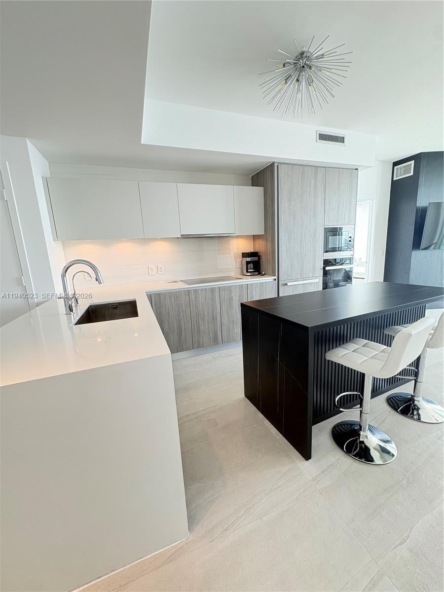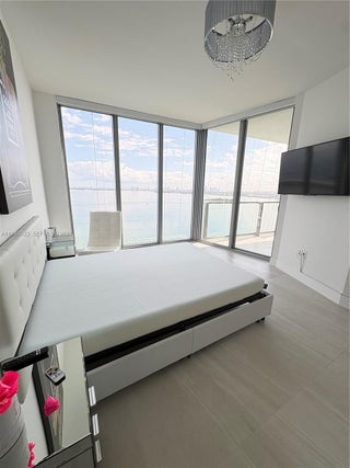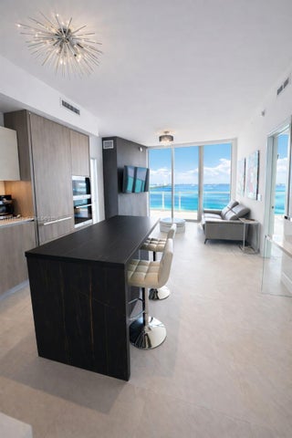Refined 2-bedroom, 3-bathroom residence offering a private foyer and a thoughtfully curated design throughout. This fully furnished condo stands out for its sophisticated finishes and extensive upgrades. The primary suite offers a comfortable and well-designed space with a custom walk-in closet, updated shower fixtures, and modern floating vanities. Italian porcelain flooring runs throughout the unit, creating a clean and contemporary feel. The kitchen features high-quality appliances, a black island, and electric blackout shades that provide both comfort and privacy. The residence provides private elevator access and tranquil bay views. Offered fully furnished, with the understanding that certain personal and decorative items shown in photos have been removed. Residents enjoy an exceptional collection of amenities including two resort-style pools, a private beach club, fitness center, spa, tennis courts, and 24-hour lobby attended. One assigned parking space is included. Located minutes from the Design District, Midtown, and the Kaseya Center, this residence offers an elevated Miami lifestyle with access to exclusive waterfront and wellness experiences.