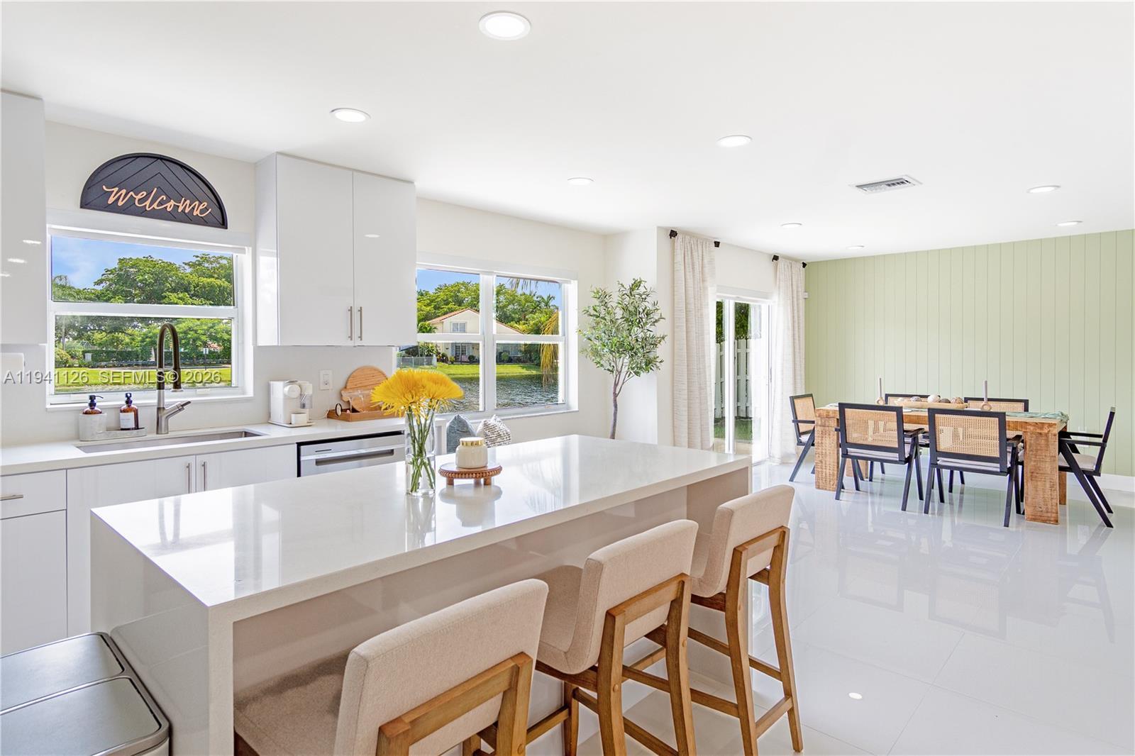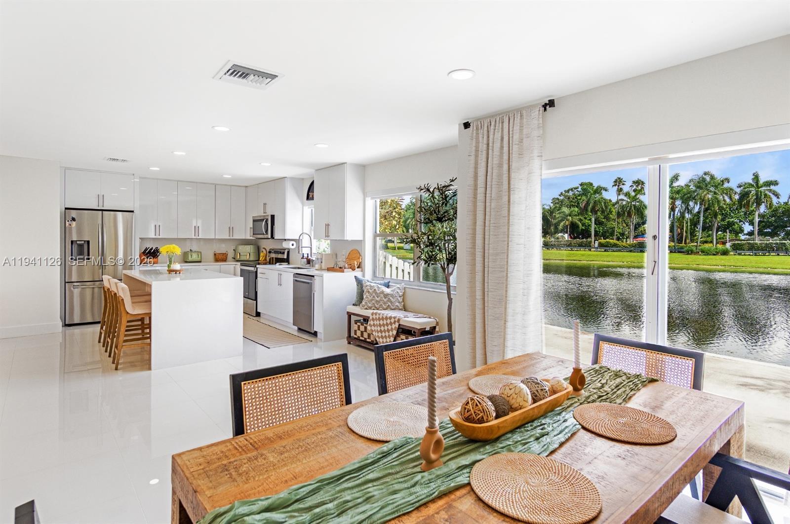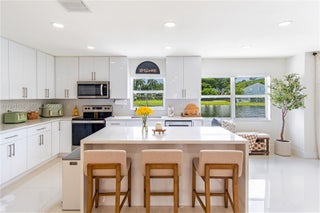 Lakefront luxury! This beautiful home in the Huntington community has been completely renovated. This modern oasis boasts remote control blinds, a beautiful kitchen with a quartz waterfall island, & porcelain tile throughout. Enjoy stunning views & bright spaces with dimmable lights. Features: stainless steel appliances, upgraded washer/dryer, impact door, & 2022 AC. Gated community with lakefront perks! Can be sold furnished.