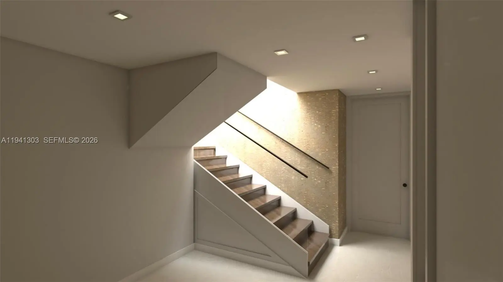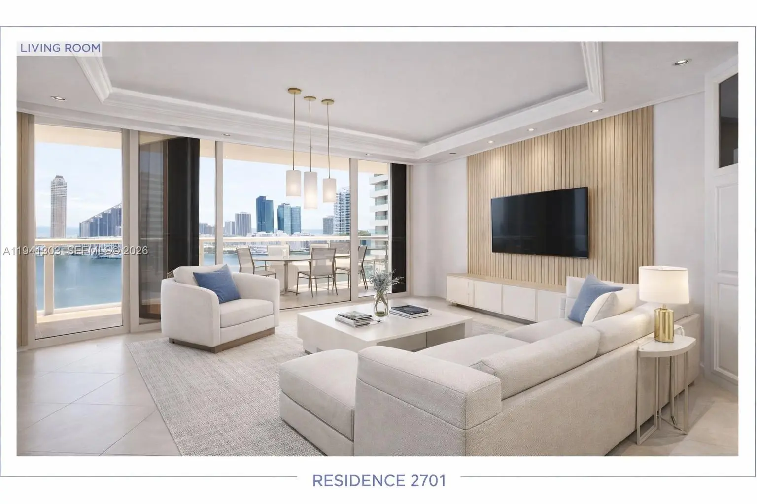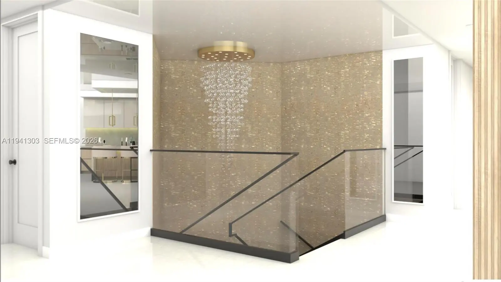 A rare duplex in the sky, this extraordinary residence offers dramatic scale, refined design, and breathtaking direct ocean and Intracoastal views from every level. Featuring 3 bedrooms, 4.5 bathrooms, plus a staff suite, this home is thoughtfully designed for both grand entertaining and everyday living. A striking glass staircase connects the two levels, creating an architectural statement while preserving light and flow. The expansive open-concept living area showcases a state-of-the-art open kitchen with waterfall countertops, premium appliances, and seamless integration into the dining and living spaces—framed by floor-to-ceiling glass and endless water vistas. Elegant 4’ x 4’ rectified porcelain white marble flooring runs throughout, complemented by custom dropped ceiling soffitry, integrated LED lighting, and refined modern finishes. The residence offers exceptional functionality with a dedicated wine storage room, full laundry room, generous closet and storage space, and a private staff bedroom. Experience elevated living within the iconic Williams Island lifestyle, featuring world-class amenities including a full-service spa, multiple dining venues, tennis, pickleball, marina, walking paths, and a vibrant social calendar—all within a secure, gated waterfront community. A truly unique opportunity to own a sophisticated sky residence with architectural presence, panoramic views, and resort-style living. Pictures are artist renderings and staged. Delivery March 2026