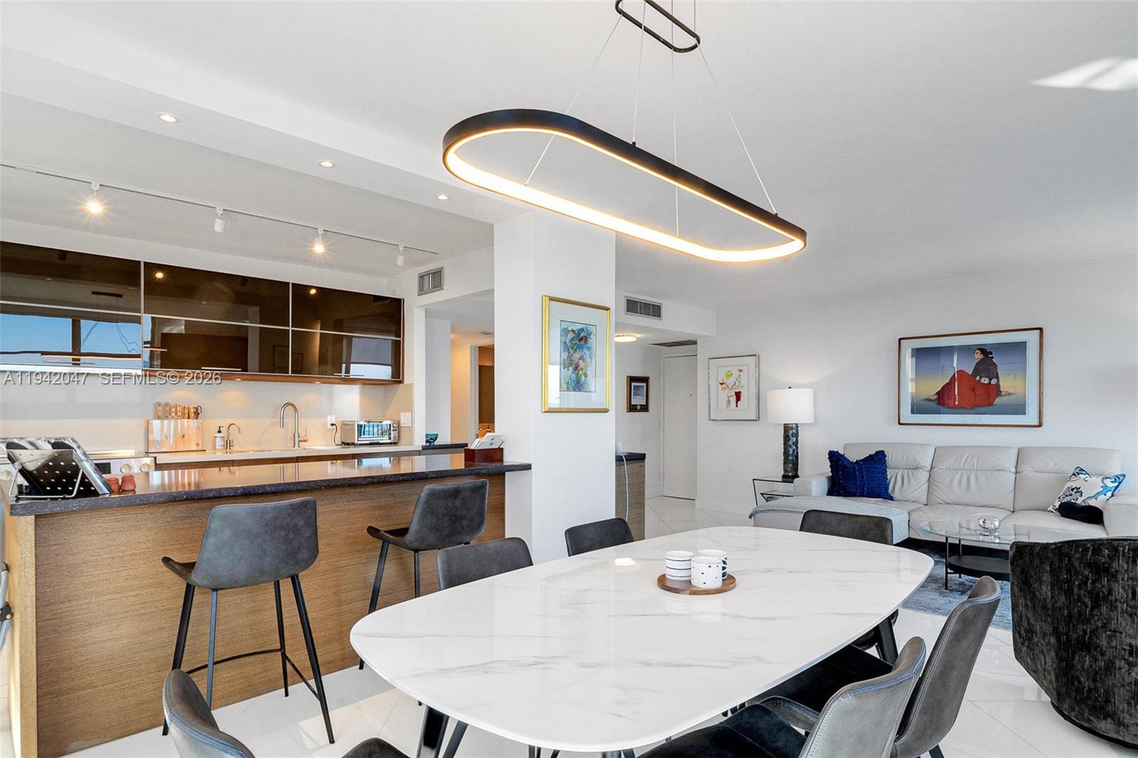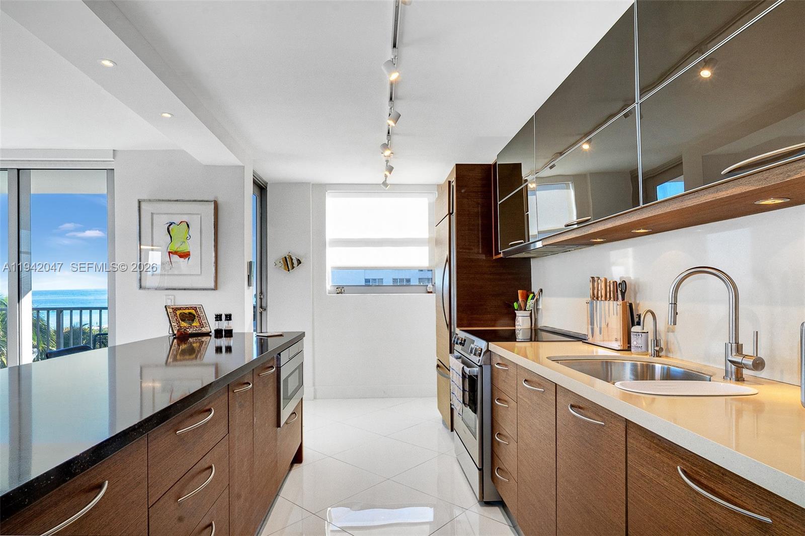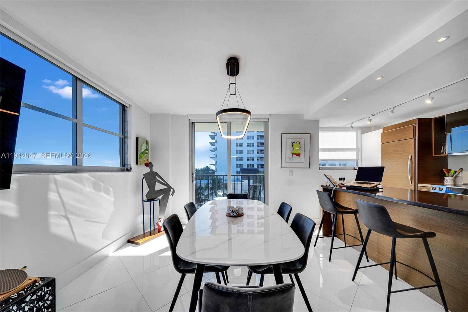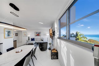 Oceanfront Condo with Direct Beach & Boardwalk Access Welcome to 9273 Collins Ave, Surfside, an exceptional oceanfront residence offering 1,155 SF of thoughtfully designed living space with direct southeast ocean exposure. Best line in the building, rarely available. This updated 2-bedroom, 2-bathroom condo features modern renovations throughout, including a sleek kitchen with top-of-the-line appliances, Sub-Zero refrigerator/freezer, and Miele dishwasher. The primary bathroom offers a double vanity and glass-enclosed shower, creating a refined and comfortable retreat. Oversized impact windows throughout with custom treatments, neutral wallpaper accents, and a blend of hardwood and tile flooring fill the home with natural light. Chandeliers and recessed lighting enhance the bright, contemporary atmosphere. The open-concept living area provides access to two private balconies, ideal for enjoying ocean breezes and sunrise views. The primary suite includes a walk-in closet and ensuite bath, while a dedicated laundry room adds everyday convenience. Residents enjoy direct access to the beachfront boardwalk and amenities, including a heated oceanfront pool, sauna, fitness center, oceanview library/recreation room, and additional outdoor spaces. Ideally located just steps from Surfside’s pristine beaches, dining, and shops, this residence offers an outstanding coastal lifestyle. Schedule your private showing today.