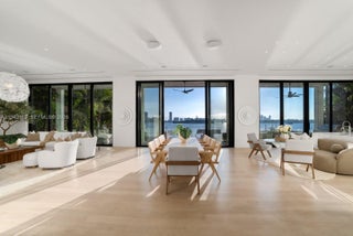 Step Inside With Me! This Modern Neo-Classical inspired estate embodies refined style and enduring sophistication on the Venetian Islands. Masterfully designed by CLF Architects and built by Brodson Construction, it was custom-built (not spec) with premium finishes and superior construction. Its iconic entry, crowned by soaring 25’ ceilings, reveals sunrise-facing interiors. Spanning over 10,000 sf per tax records, the home opens with a receiving room leading to a 64' grand social salon with formal dining and bayfront breakfast lounge. The culinary experience is anchored by an expansive eat-in island, Taj Mahal counters, gas cooktop, Wolf appliances, and views stretching toward the open waters. The stately primary wing impresses with a gallery-style entry hall leading to waterfront sleeping quarters, an intimate sitting lounge, 2 dressing rooms, and dual spa-like baths with soaking tub. An idyllic floor plan unfolds across 6 bedrooms, a media room, private office, fitness room, versatile staff quarters, and multiple sitting lounges, completing the home’s thoughtfully composed interiors. The outdoor experience is realized through lounging areas, a loggia with retractable screens, an outdoor TV, summer kitchen, covered dining, and sundeck with 42' pool. A private dock offers waterside seating along 105+ ft of Eastern Biscayne Bay breezes and a rooftop terrace provides additional hosting space with sunset views. A privacy gate, 2-car garage and generator complete this offering.