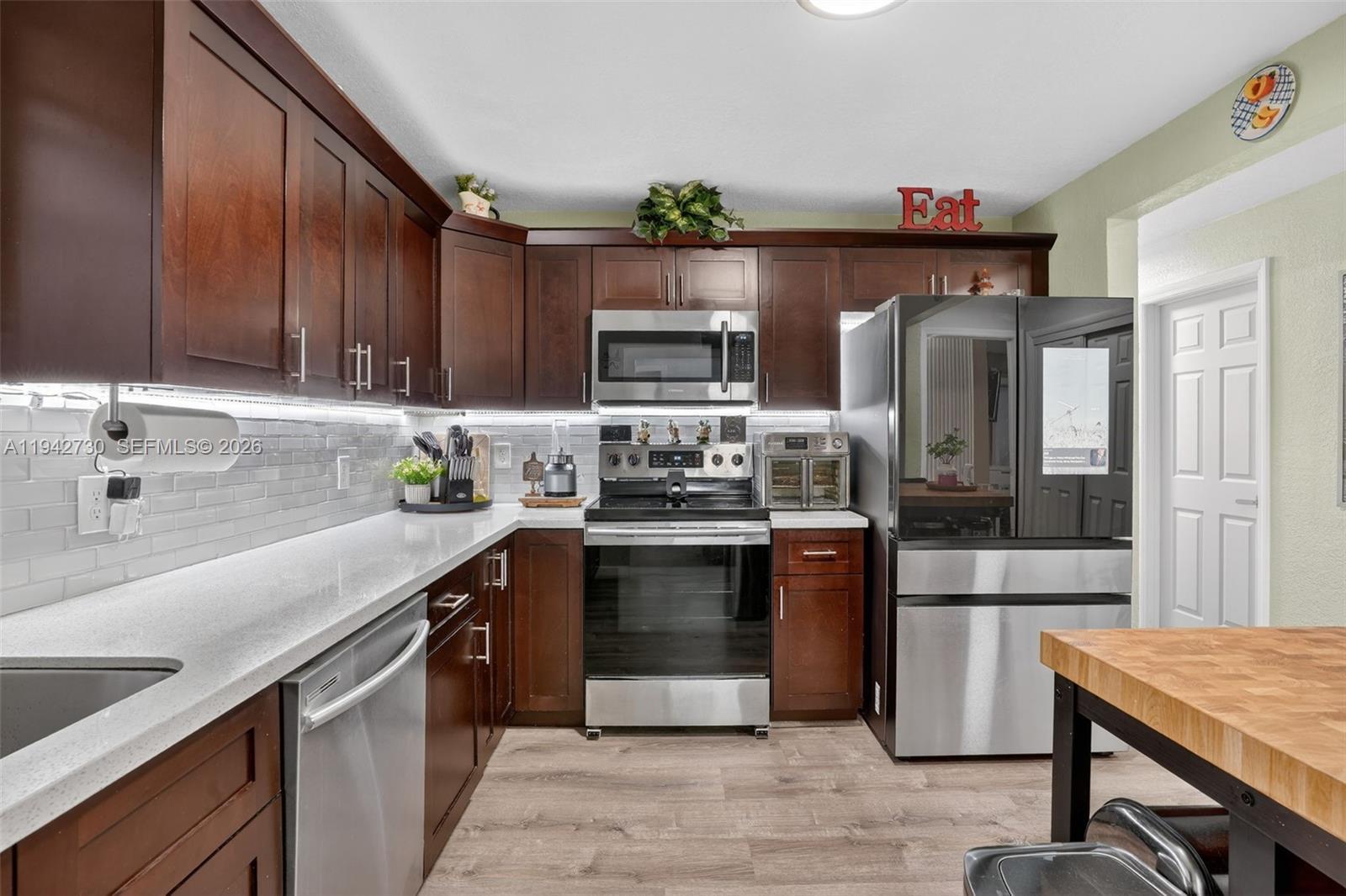 Beautiful, move-in ready 4BR/2BA single-family home offering modern upgrades and true Florida lifestyle living. This spacious residence features a bright Florida room and has been thoughtfully updated throughout, including updated flooring, an upgraded electrical system, and an espresso wood kitchen with quartz countertops, perfect for everyday living and entertaining. Both bathrooms have been fully remodeled with custom vanities and elegant quartz counters. Additional features include partial impact doors and windows and a newly installed driveway for added curb appeal. Enjoy outdoor living in a fully fenced backyard with a gazebo and built-in bar, plus an above-ground pool with a new pump and timer for easy maintenance. Ideally located near Florida Turnpike and I-95, with convenient access to restaurants, shopping centers, and everyday conveniences.