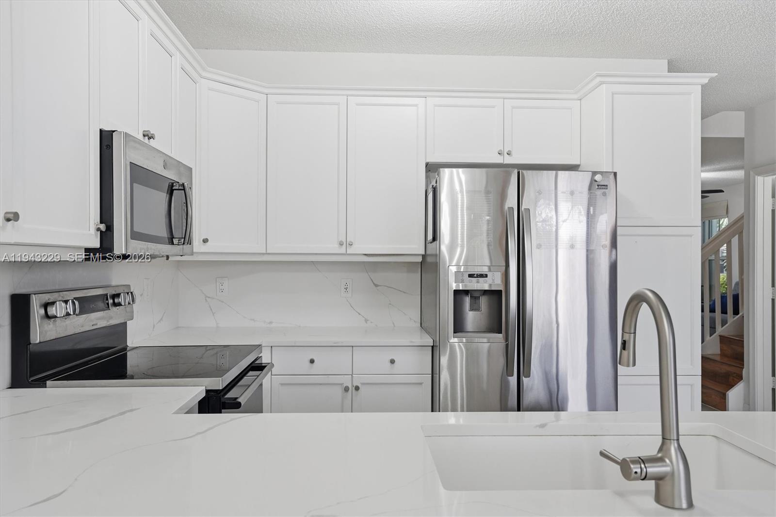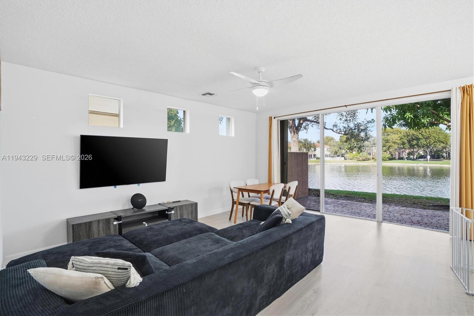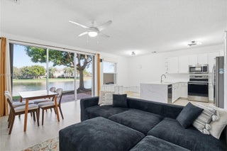 Beautifully renovated 3-bedroom / 2.5-bathroom townhouse in the gated community of Regalo at Riviera Isles. This corner lot with NEW ROOF offers tranquil lake views and convenient open layout featuring high ceilings, an airy family room that flows effortlessly into a renovated open kitchen with quartz waterfall island and countertops, and stainless steel appliances. New luxury vinyl floorings on the 1st floor and warm wood laminate on the 2nd floor. Guest bathroom downstairs, for added convenience. Enjoy the primary suite upstairs with breathtaking lake views and a versatile loft. Private patio, ideal for entertaining, includes a remote-controlled awning. Additional perks include a full water filtration system, accordion shutters, 1-car garage, and a driveway for 2 vehicles. Community highlights include pool, playground, and low HOA fees. Ideally located near I-75, close to shopping and restaurants. Top-rated schools. Mortgage savings may be available for buyers of this listing.