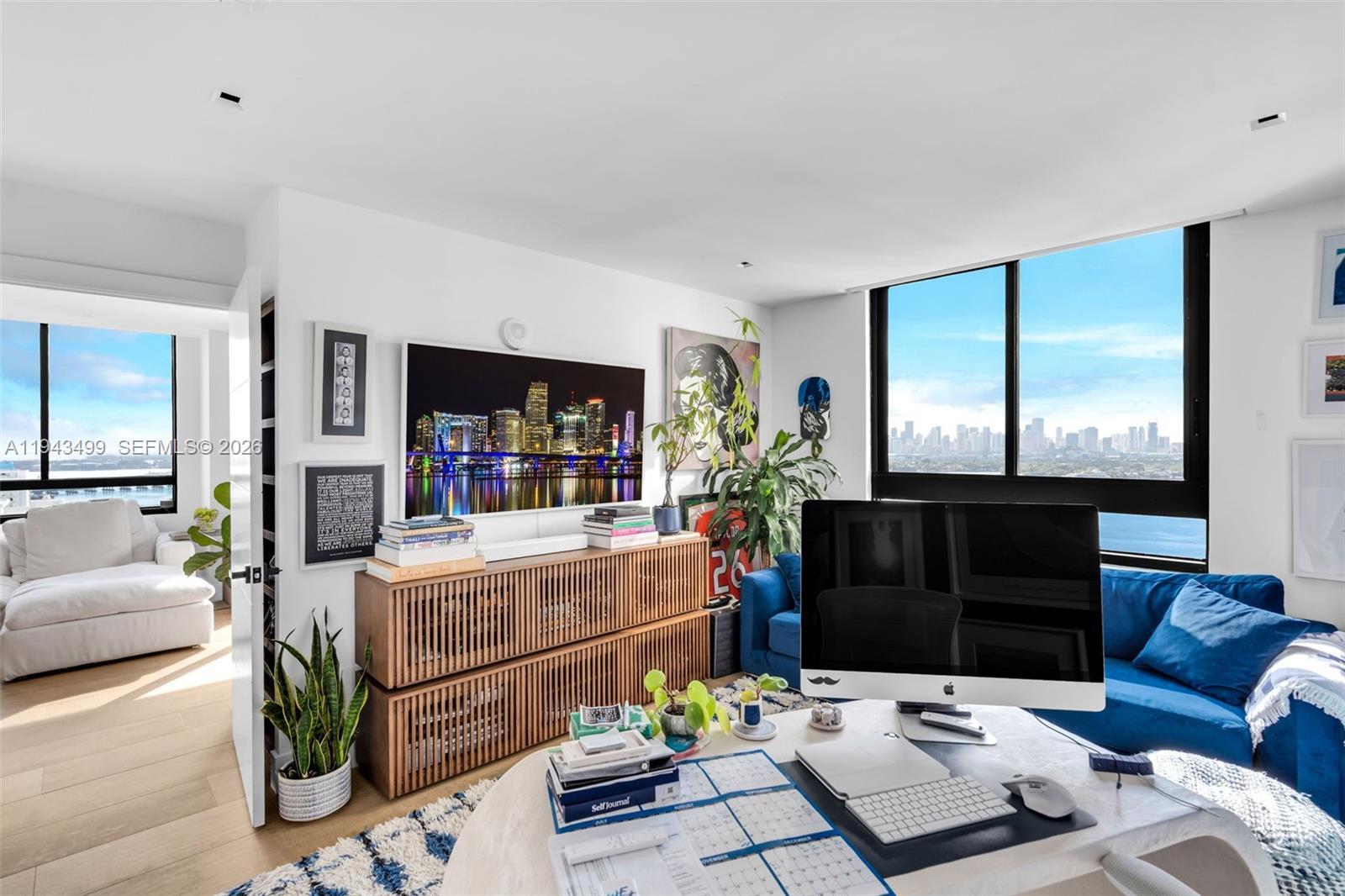 Brand new, turnkey gut renovated unit with direct downtown views at the Waverly South Beach. This is the largest line at the Waverly, huge open living room, wine fridge and 2 beverage centers. Lots of natural light, tons of storage and close space. Enjoy breathtaking sunset views over downtown and the bay, with exposures to the south and west from a high floor that also offers glimpses of the ocean. This exclusive 2-bedroom 2 bath unit includes 2 parking spaces. Tennis and volleyball courts, alongside a pristine pool, add to the allure of this prestigious building. Located a few blocks from Sunset Harbour, this is urban living at its finest.