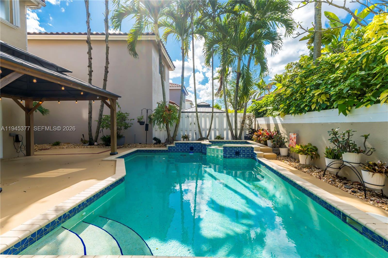 Beautifully maintained two-story single-family residence located on a premium corner lot in the prestigious, guard-gated waterfront community of Three Lakes in Kendall, a boaters dream. This elegant home offers 4 bedrooms, 2.5 baths, a two-car garage, and a private pool with gazebo, set within a spacious, light-filled floor plan designed for both comfort and entertaining. The updated kitchen features granite countertops and newer stainless steel appliances. The primary suite is a true retreat, complete with a walk-in closet and a tastefully updated ensuite bath showcasing a walk-in shower, separate soaking tub, and custom built-in storage. Upstairs has all new flooring throughout. Additional highlights include a new Trane A/C and accordion shutters for added peace of mind. Residents enjoy resort-style amenities including a clubhouse, tennis courts, fitness center, playground, parks, scenic bike trails, common boat ramps, boat & RV storage, ample guest parking, and 24/7 guard-gated security. Ideally located near major highways, top-rated schools, upscale shopping, and fine dining.