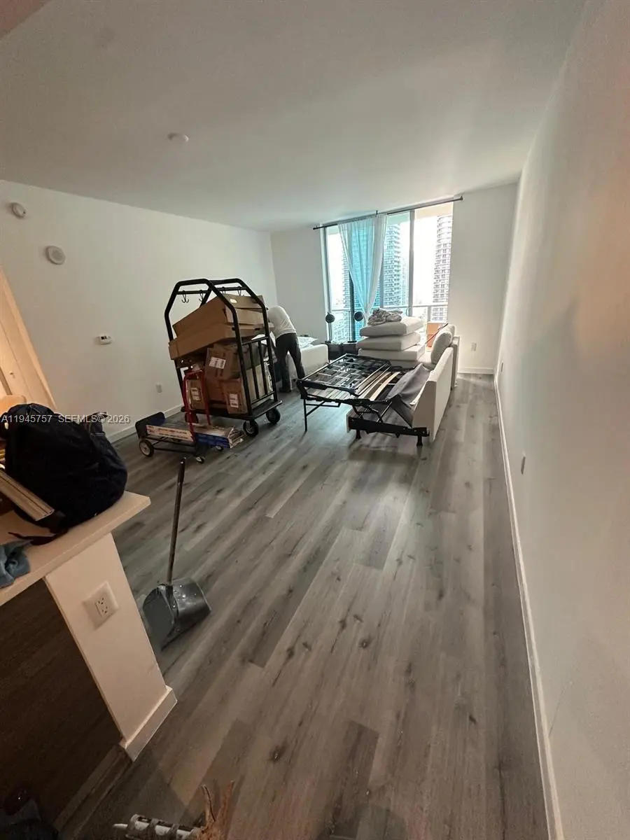 Stunning 1-bedroom, 1-bath residence with beautiful city views and abundant natural light. Featuring elegant dark gray wood-style flooring, this unit offers a modern open-concept kitchen with quartz countertops and sleek white high-gloss cabinetry. The stylish bathroom adds a contemporary touch, while the spacious closet comes fully built-out for optimal organization. Enjoy resort-style amenities including a rooftop deck and pool, state-of-the-art fitness center, children’s playroom, movie theater, and more. A perfect blend of comfort, style, and urban living.