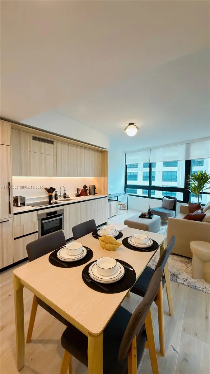 Experience luxury urban living at District 225, Miami’s premier full-service condominium designed for both residents and investors. This fully furnished 1-bedroom, 1-bath residence features 9 ft. ceilings, contemporary finishes, and smart-home technology. The gourmet kitchen is equipped with custom Italian cabinetry and premium Bosch appliances, including a paneled refrigerator, dishwasher, built-in convection oven, and cooktop. Additional features include built-out closets, a full-size washer/dryer, and a spa-inspired bathroom with Italian vanities and a rain shower. District 225 was intentionally designed for short-term rental flexibility, allowing owners to host with ease. An on-site concierge team is available to assist with Airbnb operations and guest support—making this an exceptional opportunity for investors. Residents enjoy resort-style amenities, including an expansive pool deck with bar and lounges, state-of-the-art fitness center, yoga and spinning studios, indoor basketball court, rock-climbing wall, racquetball court, full-service spa, and a dedicated co-working floor with private meeting rooms. The rooftop deck offers a plunge spa, fire pit, summer kitchen, and panoramic views of Downtown Miami and Biscayne Bay. Prime location, luxury living, and turnkey rental capability—this residence at District 225 offers unmatched lifestyle and investment potential in the heart of Miami.