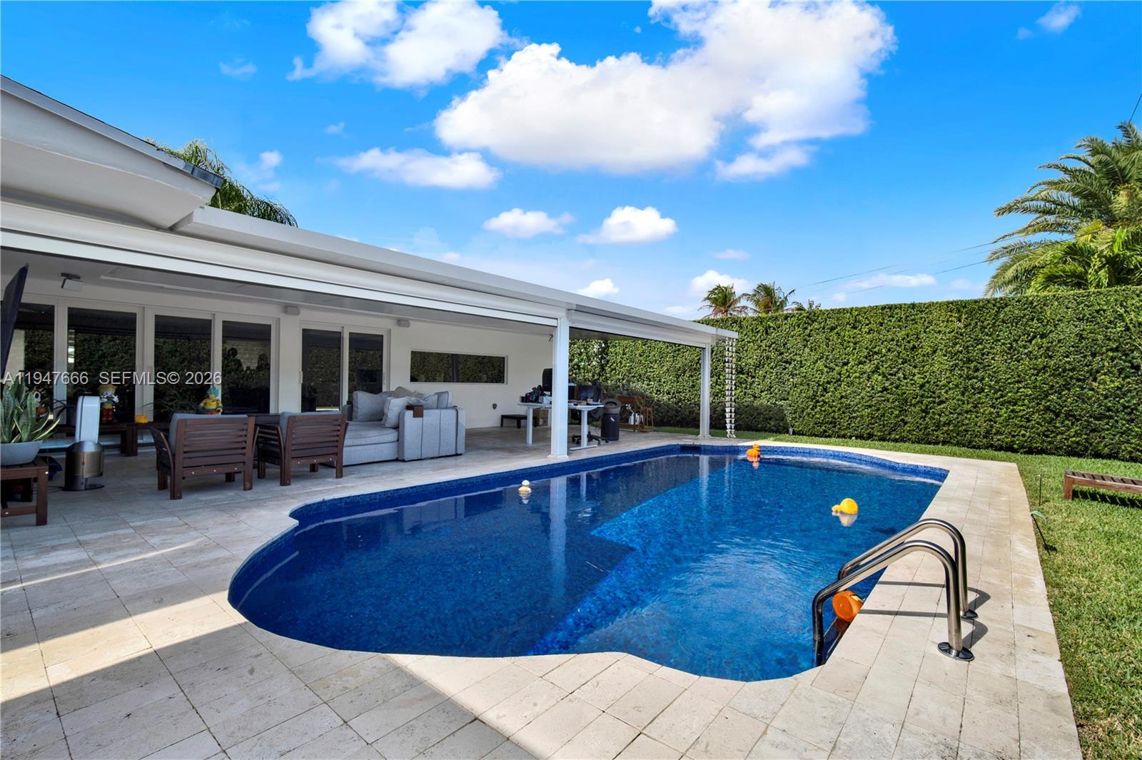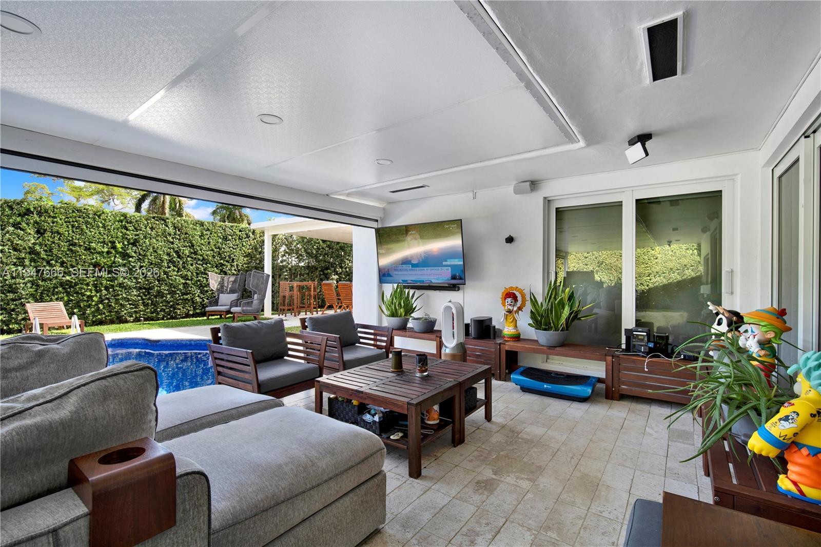 Stunning fully renovated & SMART HOME residence in the desirable Highland Gardens neighborhood. 3 Bedroom, 2 Bath, offering extensive upgrades and high-end finishes throughout. This exceptional home features porcelain flooring, a fully integrated smart electrical and lighting system, brand-new smart-enabled appliances, and a new energy-efficient smart A/C system for minimal energy consumption and exceptionally low electric bills. The bright open-concept layout showcases modern luxury finishes, hurricane-impact windows, and custom-designed built-in libraries. All bedrooms are thoughtfully designed, including a spacious fully remodeled primary suite with designer closets and an expansive updated bathroom. The upgraded gourmet kitchen is equipped with smart appliances and a professional gas range. A wall of windows overlooks the private backyard oasis. Outdoor upgrades include fully remodeled exterior flooring, an elegant Terrace, a renovated Pool, smart automatic terrace enclosures, intelligent blinds, a fully landscaped garden, a renovated privacy fence, and a fully automated smart irrigation system. Ideally located near major highways, shopping, dining, and excellent schools. Move-in ready, with countless upgrades, and truly one of a kind.