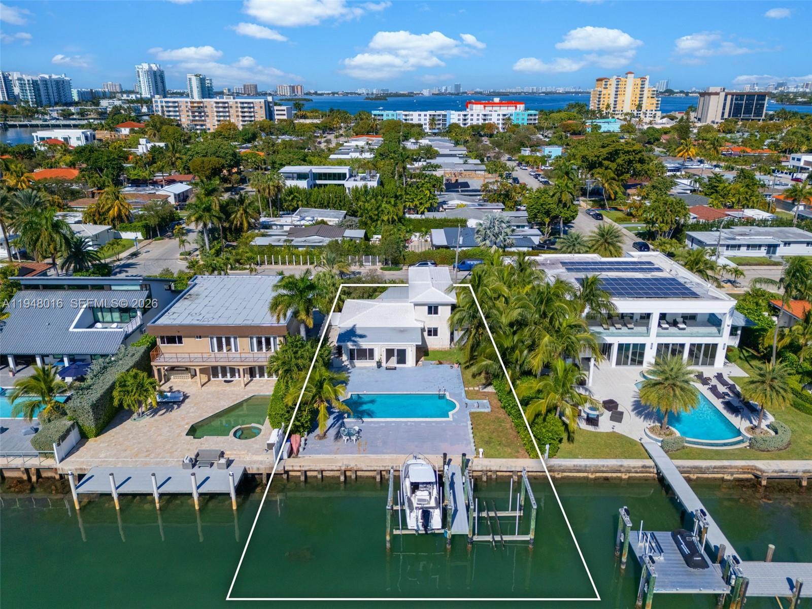 Experience wide, unobstructed, and extraordinary panoramic open-bay views of both the Miami and Miami Beach skylines from this exceptional waterfront residence in North Bay Village. Ideally positioned on ultra-prestigious South Treasure Drive, this property offers what discerning buyers and boaters value most: true direct ocean access — with no fixed bridges. The 4-bedroom, 3-bath home sits on a 10,500 SF lot with approximately 70 feet of direct bay frontage, a seawall (2018), new roof, and exceptional redevelopment potential. Boating enthusiasts will appreciate the two boat lifts (20,000-lb and 12,000-lb, currently rented) and immediate access to Biscayne Bay and the open ocean. Surrounded by trophy waterfront estates and ongoing luxury redevelopment, inventory along this water line is increasingly rare. Whether enjoyed as-is or reimagined into a custom waterfront estate, the property delivers unforgettable sunsets, 180-degree unobstructed water vistas, and a lifestyle defined by views, access, and exclusivity. Just minutes from Miami Beach, Downtown Miami, and blocks from Normandy Shores Golf Course, this is a prime opportunity to secure a premier waterfront position in one of Miami’s fastest-rising island neighborhoods. A rare offering. A lasting investment. Your slice of paradise awaits.